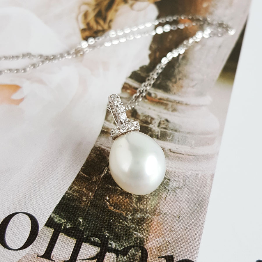 名称 | AU750白金镶钻镶天然椭圆约11.0*10.1MM粉色晕彩AKOYA海水珍珠吊坠项链 |