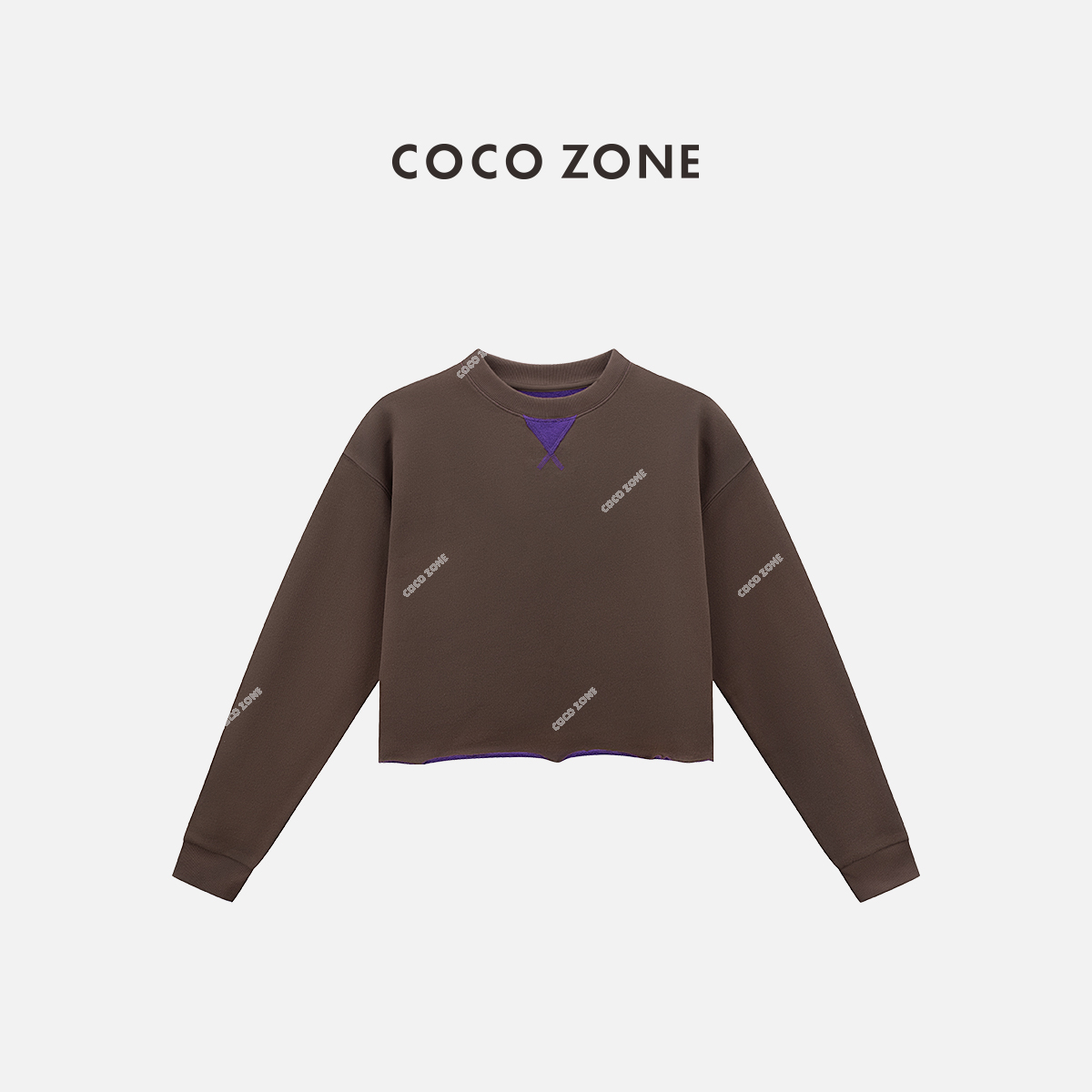 COCO ZONE 100棉设计感撞色拼接圆领长袖卫衣CC2C1508