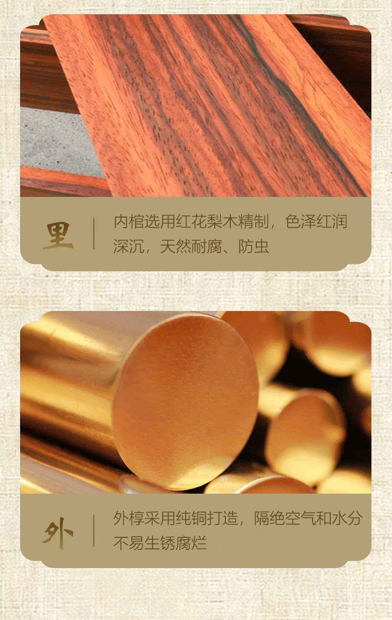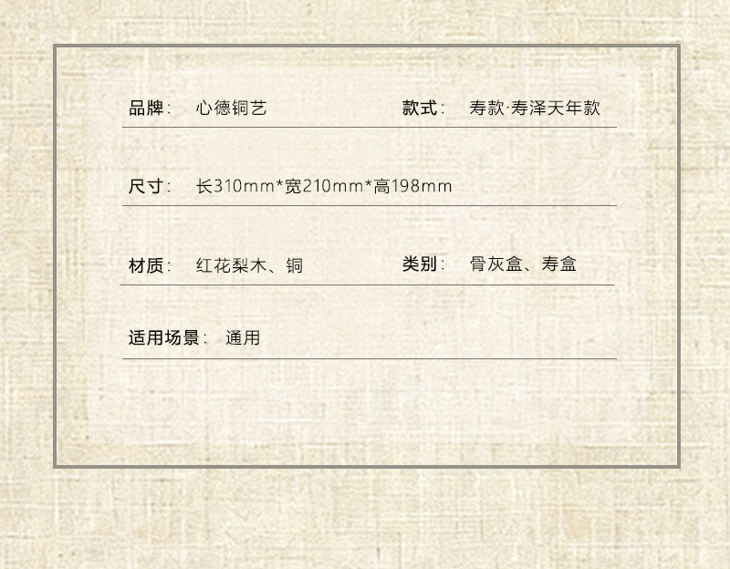 铜制骨灰盒寿款·寿泽天年款红花梨木男女寿盒