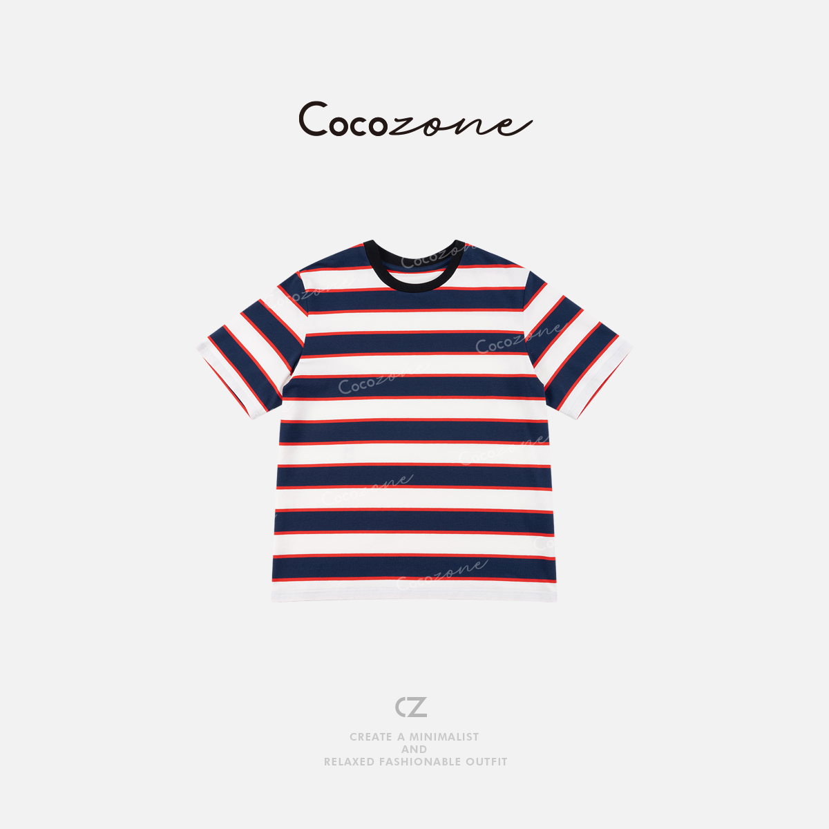 COCO ZONE 刘一一 2025新款精致条纹宽松圆领短袖T恤CD2A0555