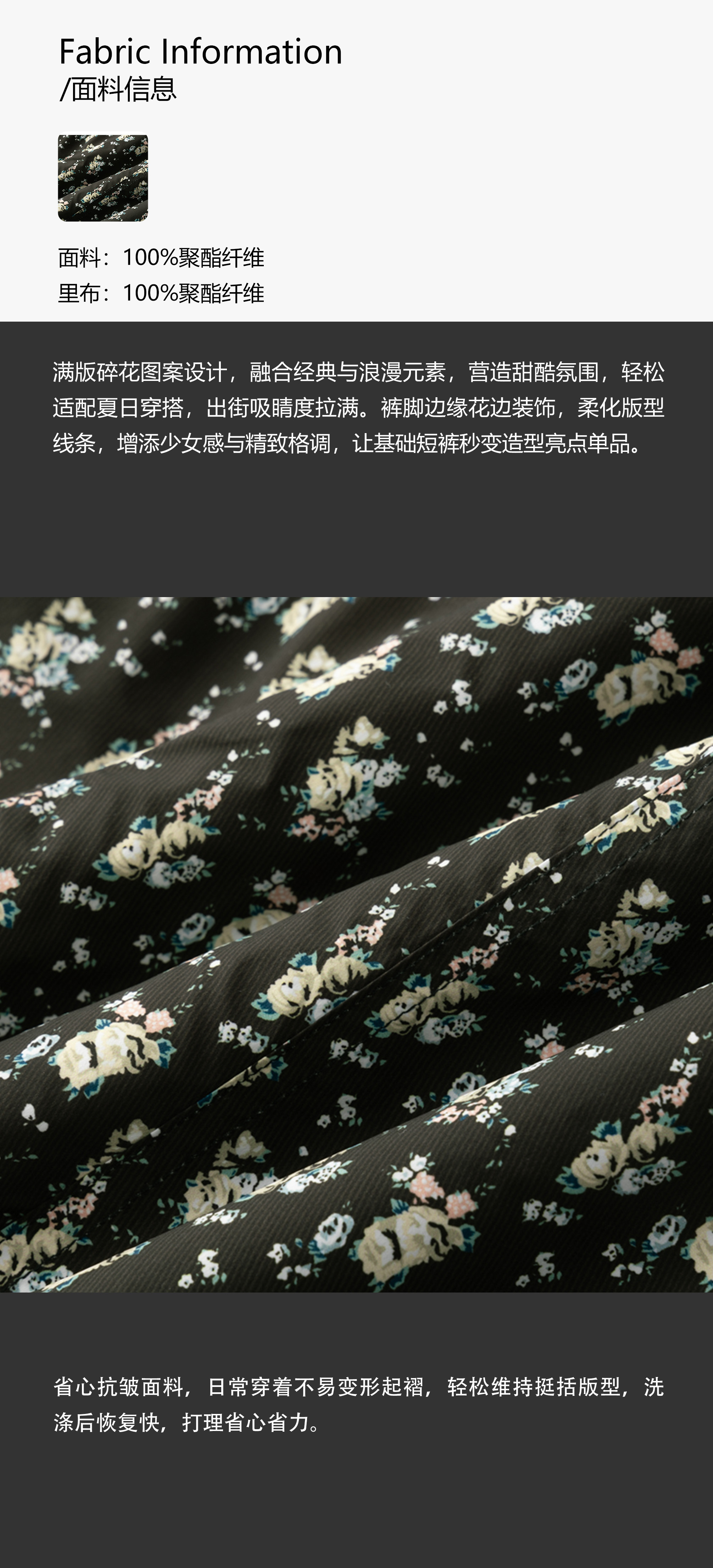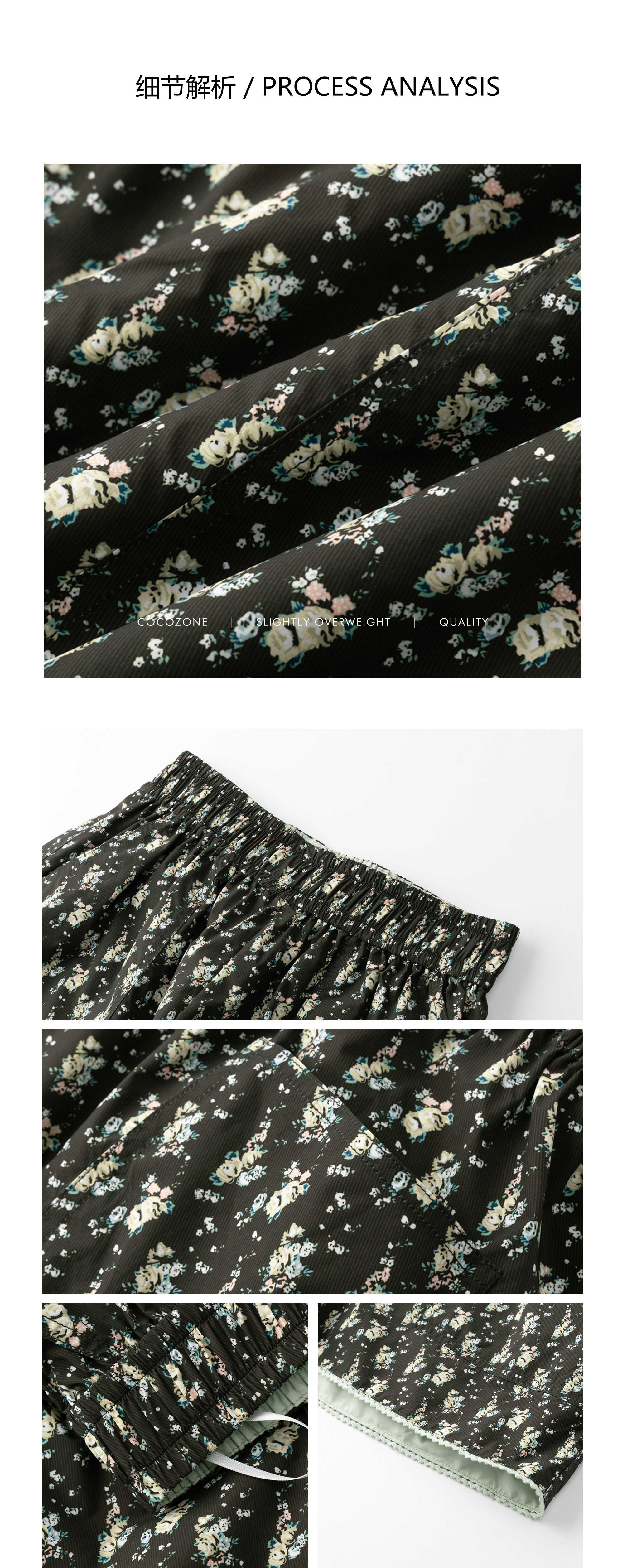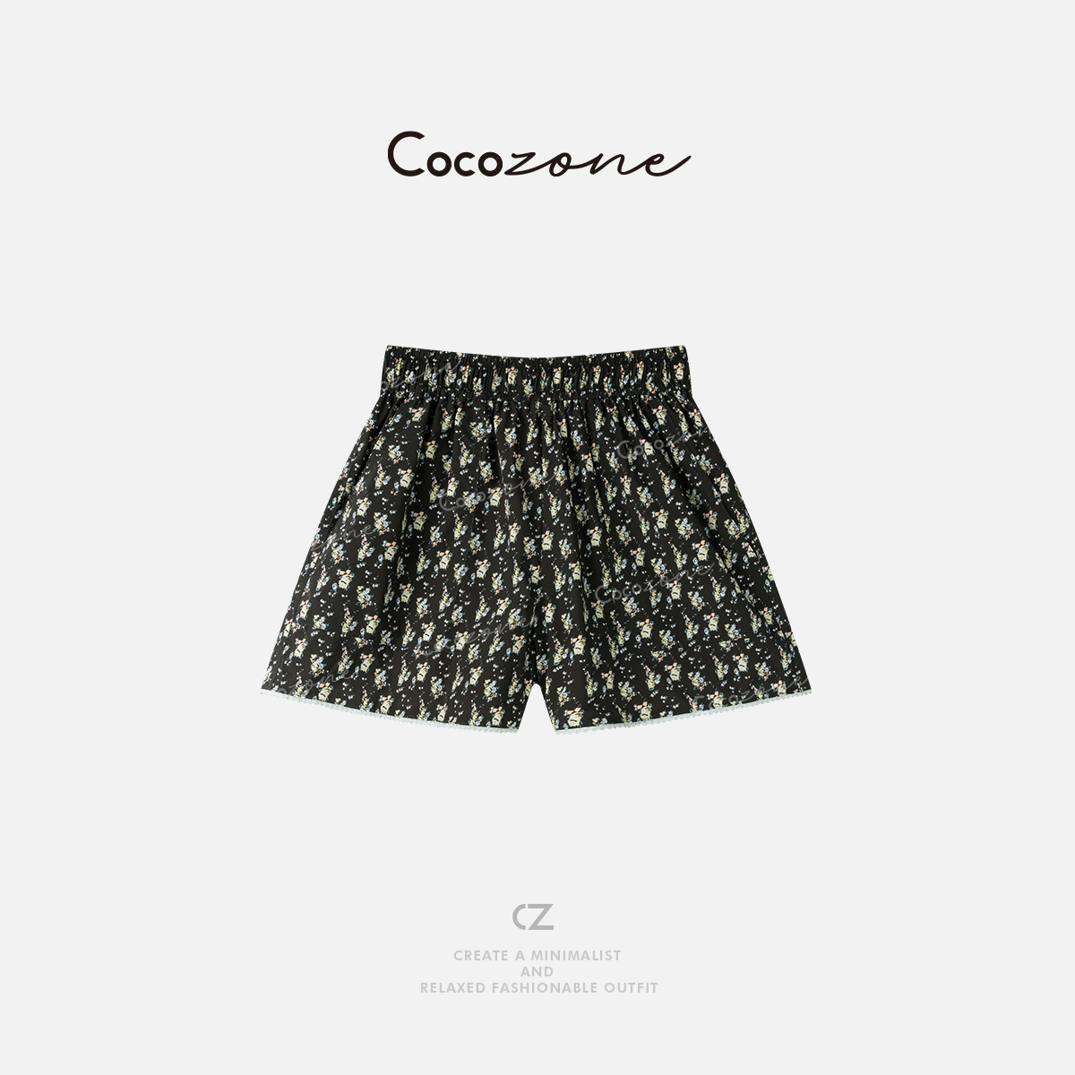 COCO ZONE刘一一 复古松紧腰带碎花家居女式休闲短裤CD2A0674