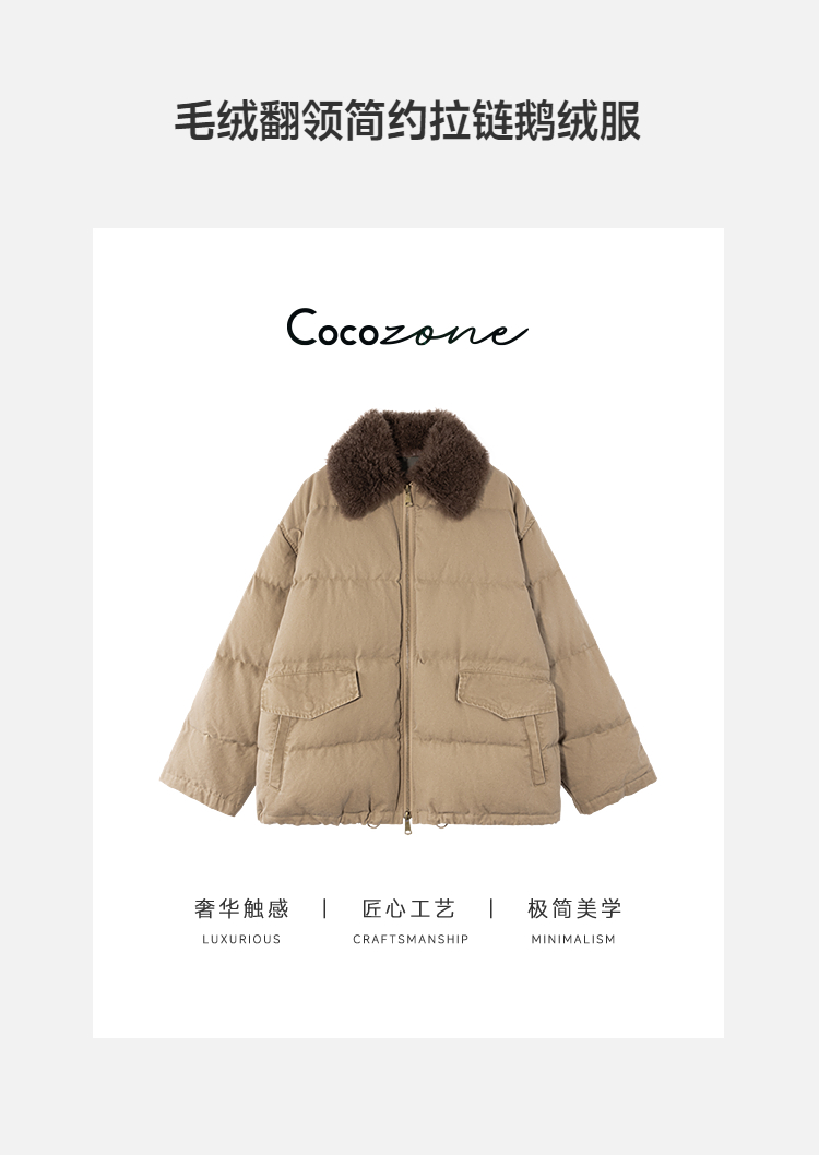 COCO ZONE 刘一一 “雪松”100棉毛绒翻领拉链鹅绒服CD2A2557