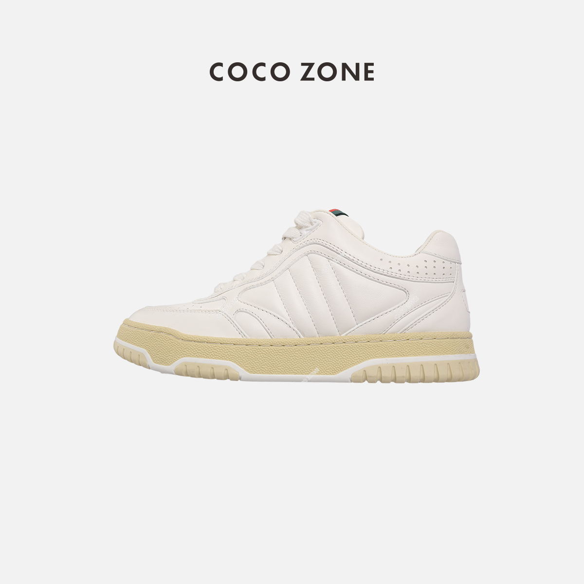 COCO ZONE 牛皮面复古休闲鞋经典织带羊皮内里厚底小白鞋24C60013