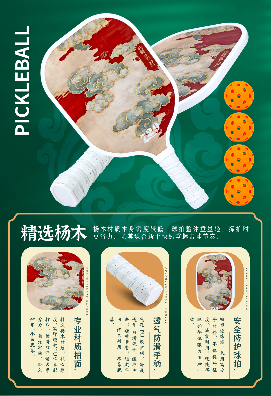 [2拍送4球] 友谊729 匹克球603型五层杨木底板耐打耐磨专业匹克球拍大童成人室内外通用套装