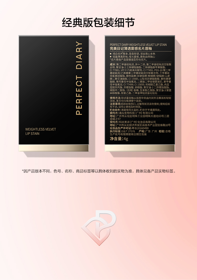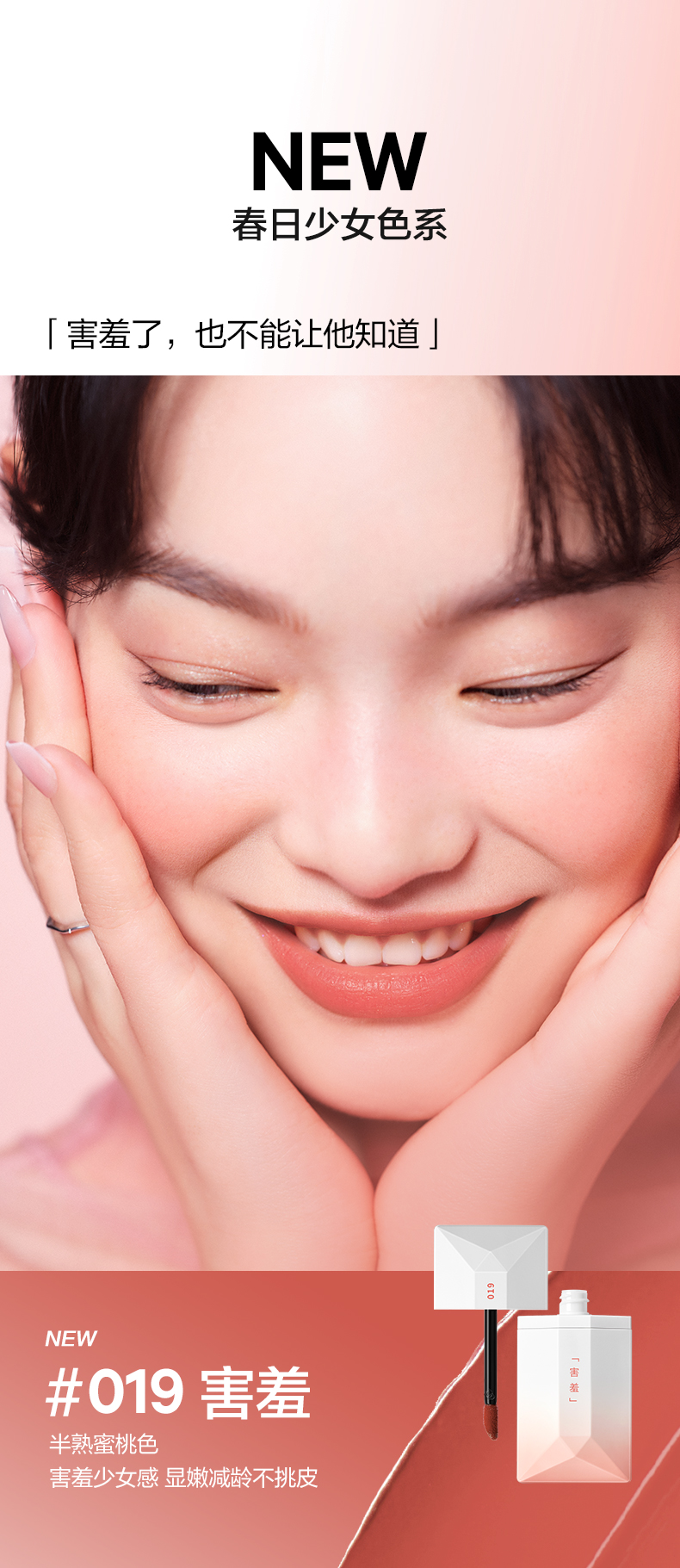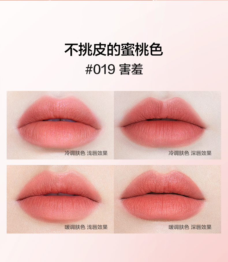 完美日记薄透雾感名片唇釉4ml 半熟蜜桃色-019害羞