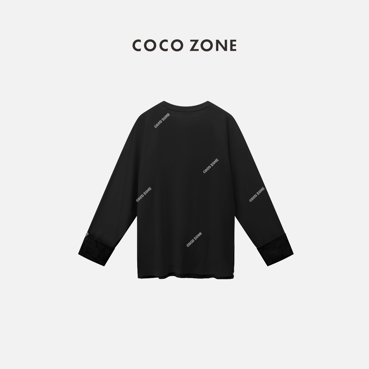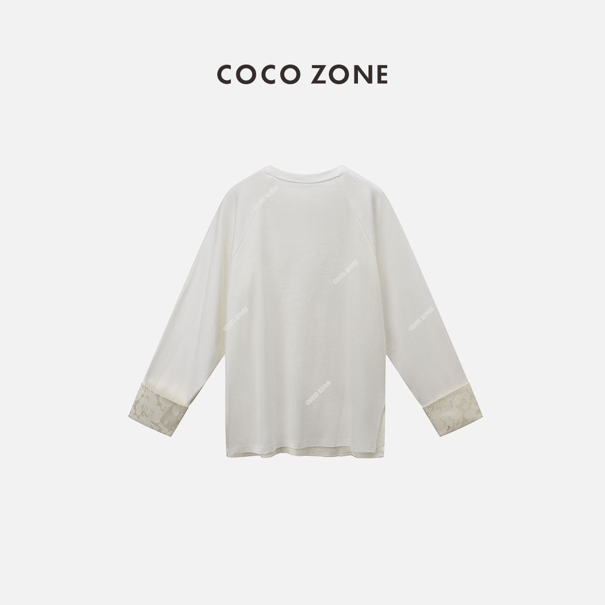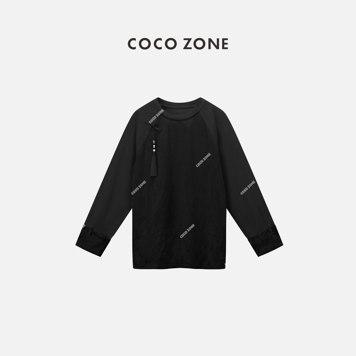 COCO ZONE 早春穿搭新中式提花圆领T恤长袖上衣CC1A0504