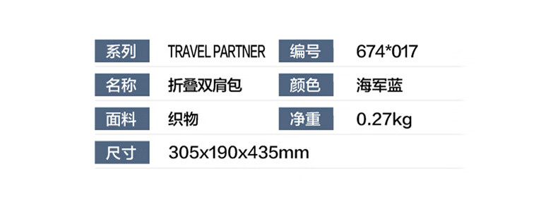 TRAVEL PARTNER 系列新秀丽折叠双肩包674*41017