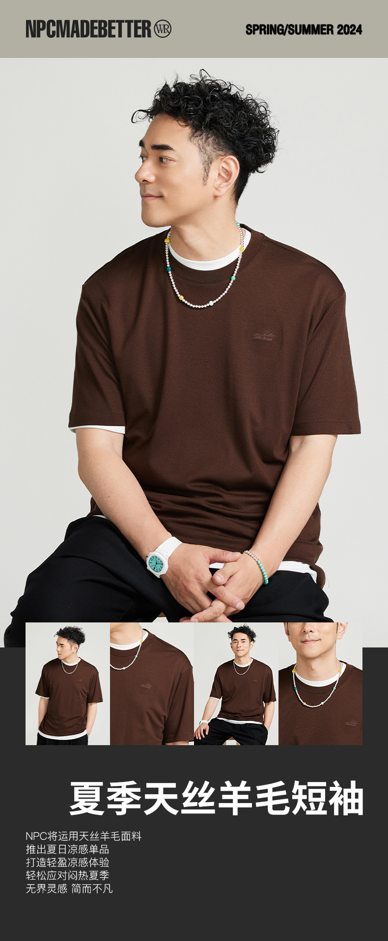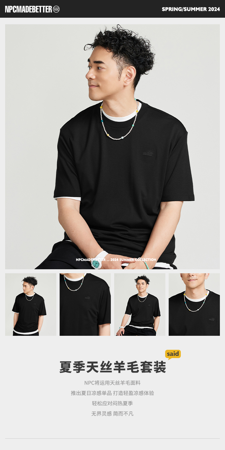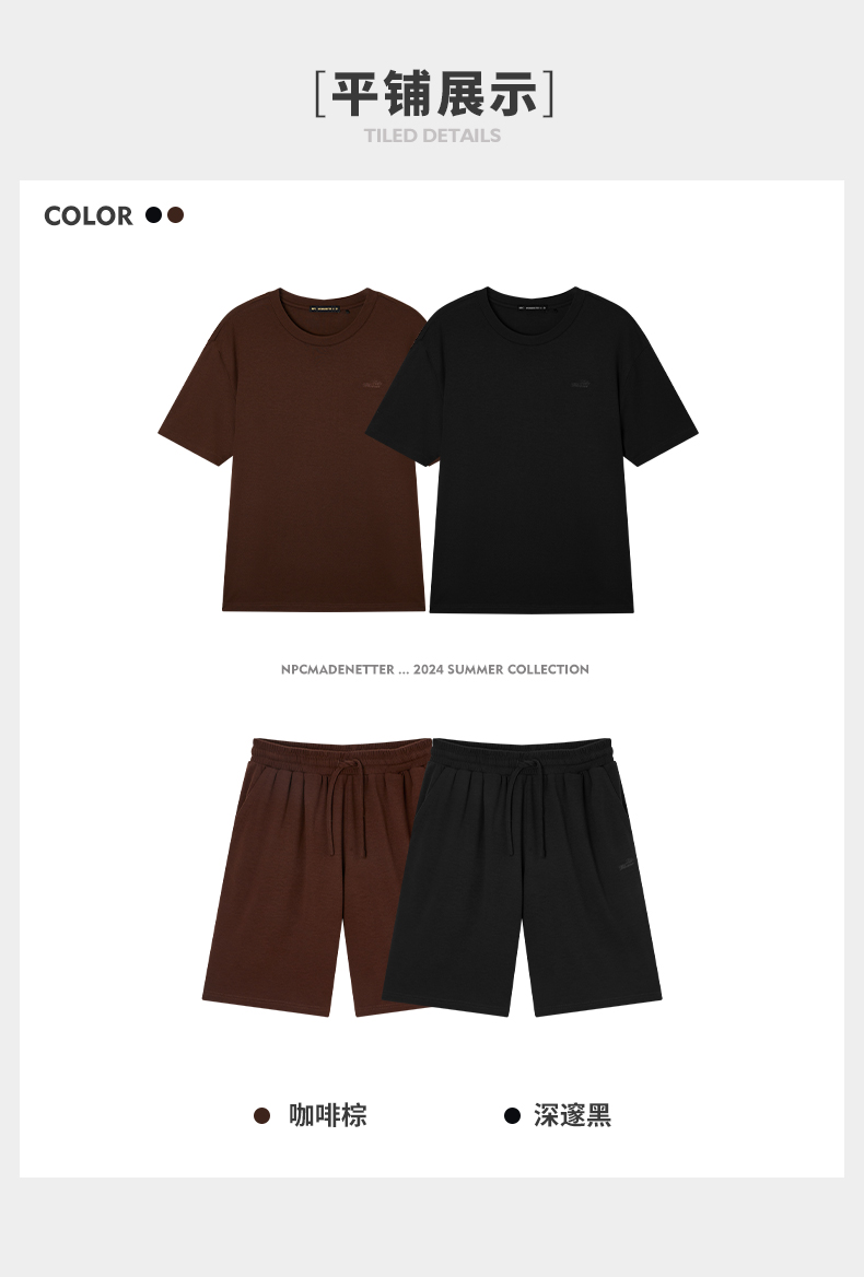NPC潮牌老钱风字母刺绣【莱赛尔】羊毛短袖短裤舒适套装NP45TE08