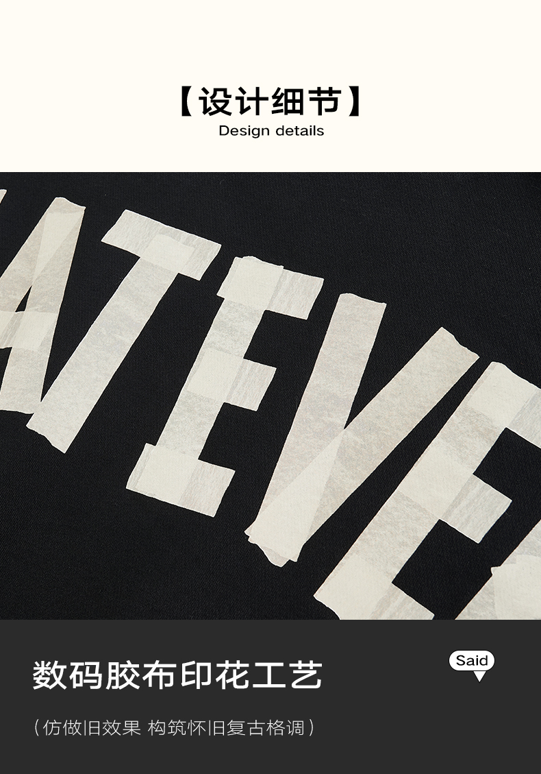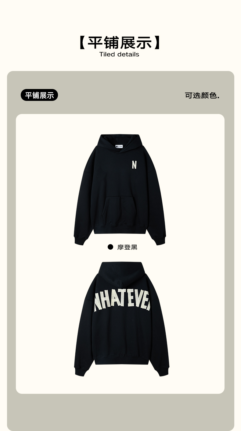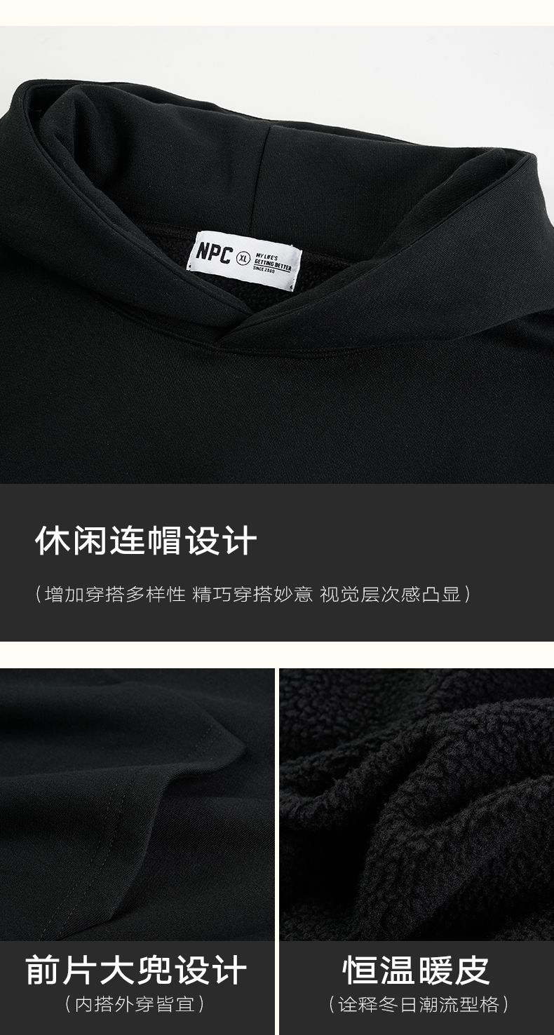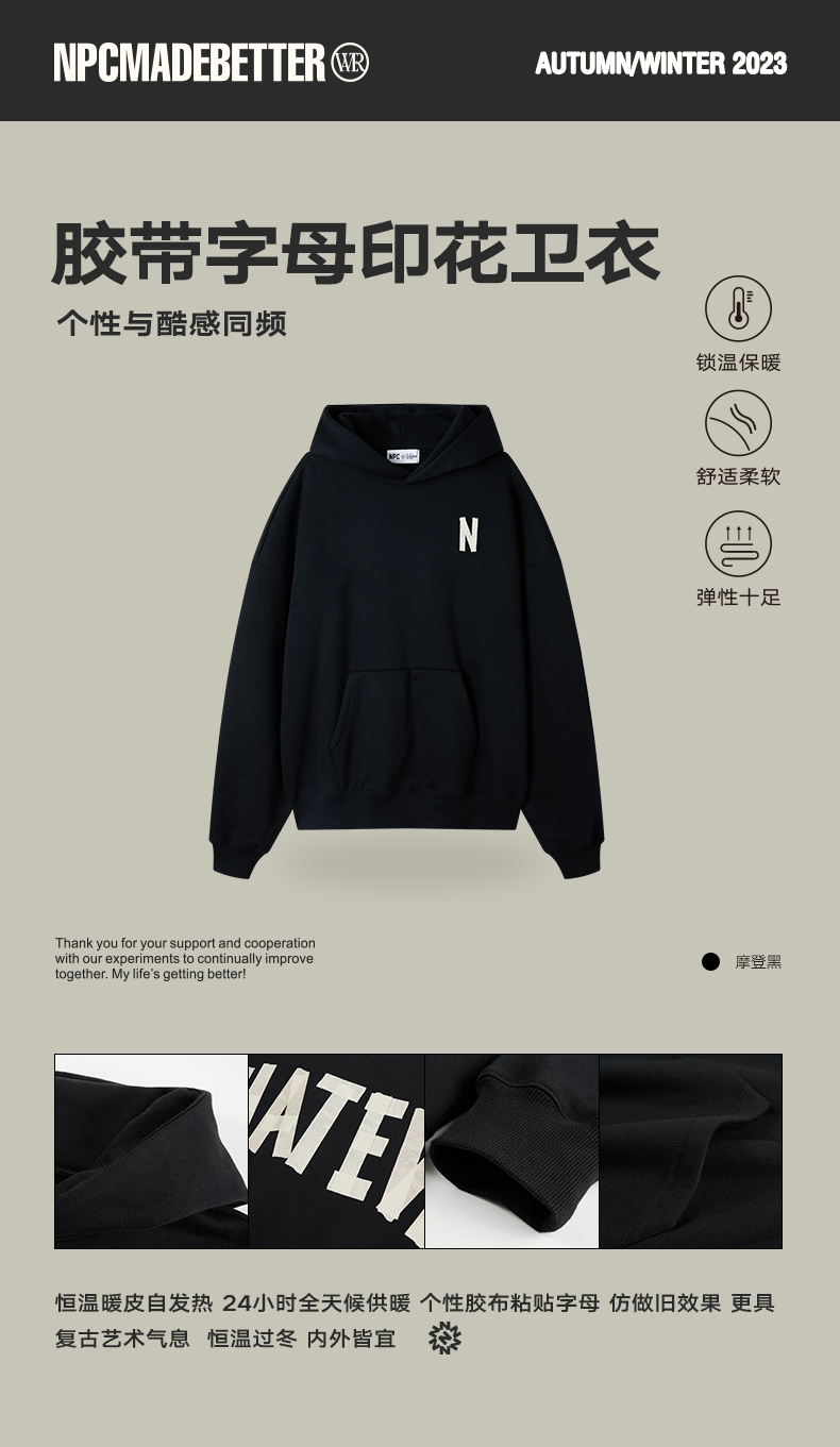 NPC潮牌做旧胶布字母连帽卫衣【恒温暖皮】厚款潮流情侣NP3AST39
