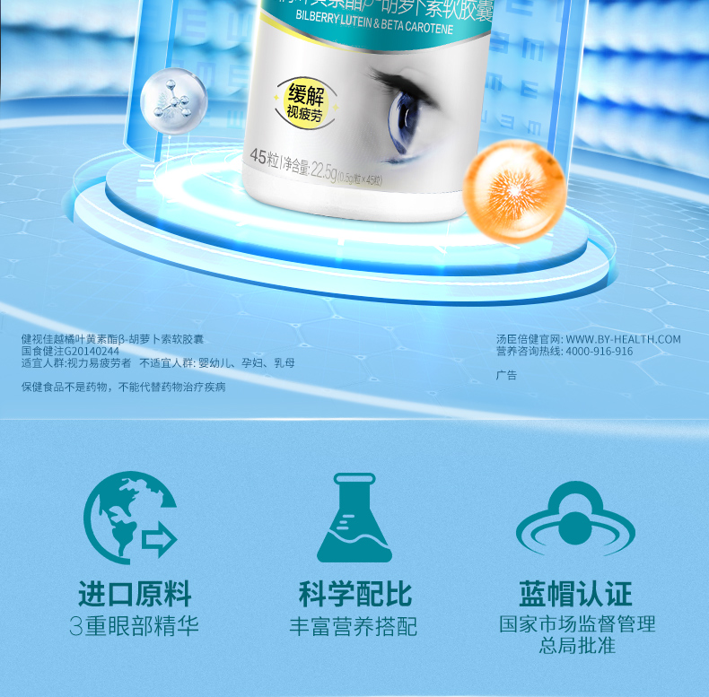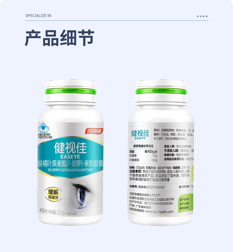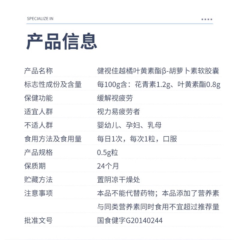 健视佳® 越橘叶黄素酯β-胡萝卜素软胶囊22.5g(0.5g/粒*45粒)