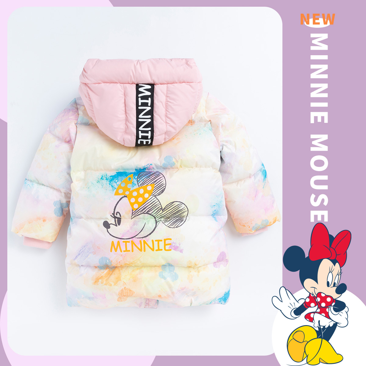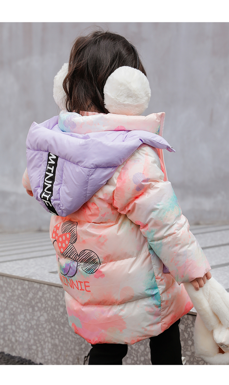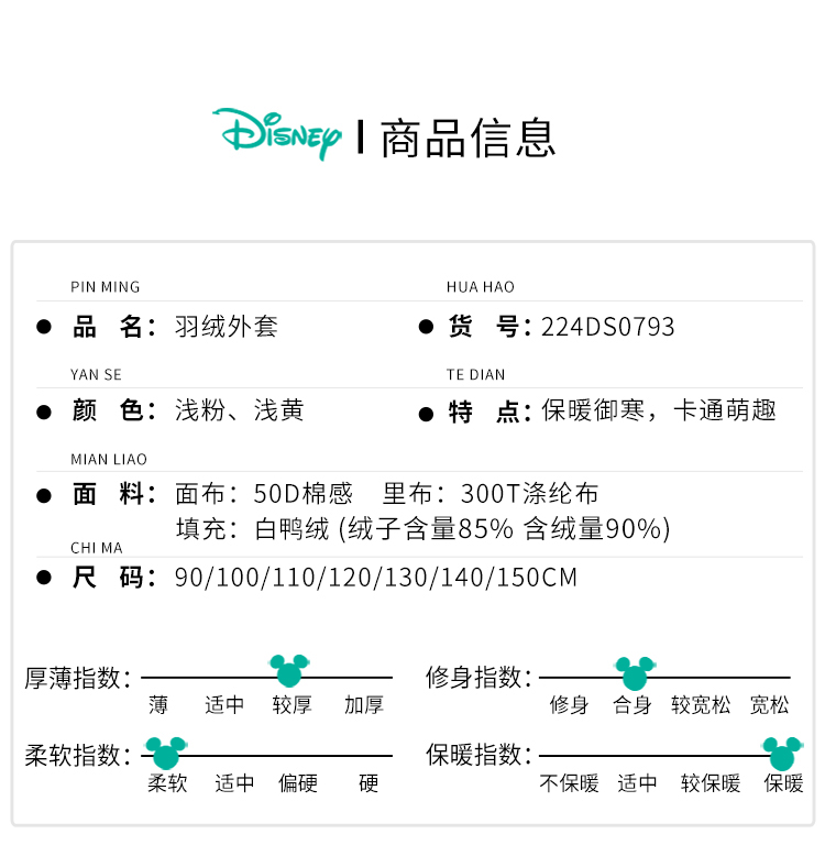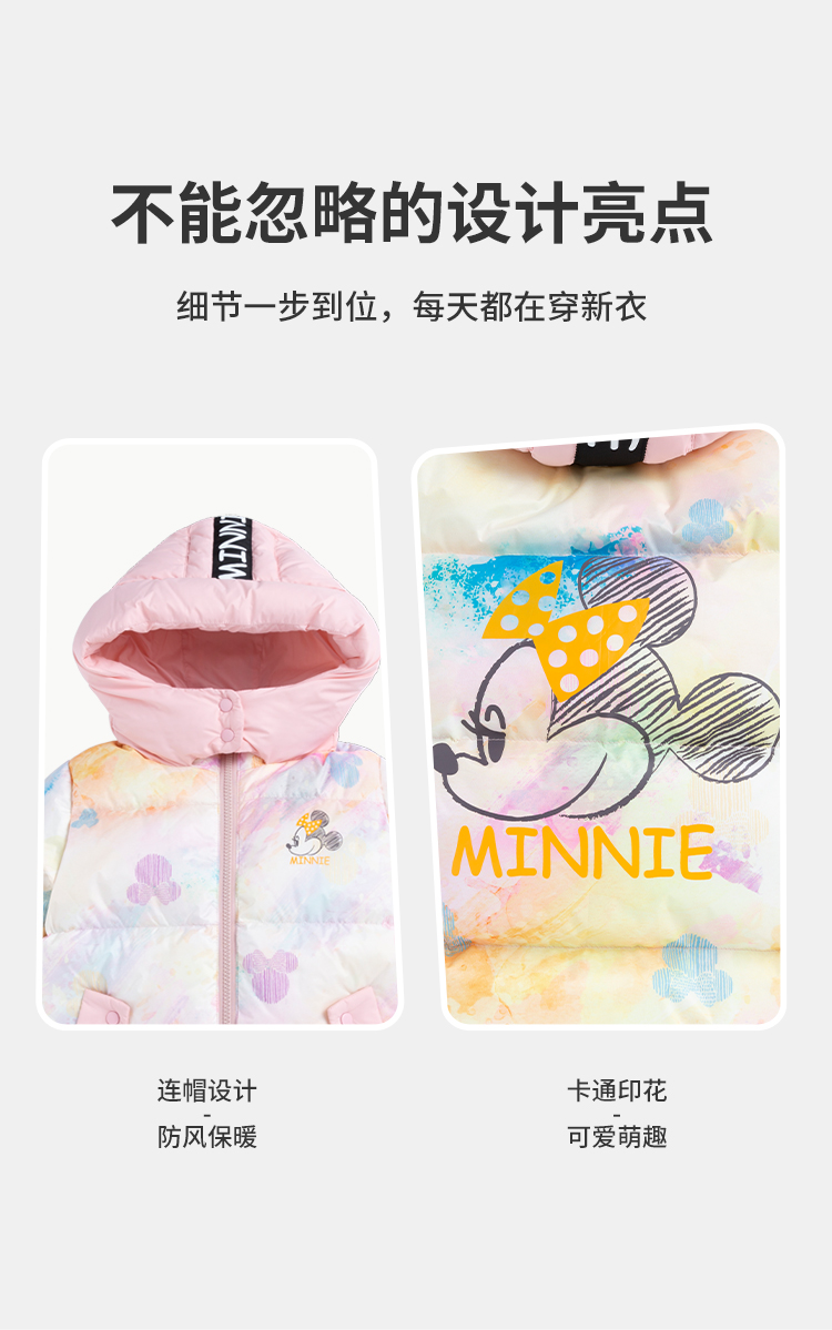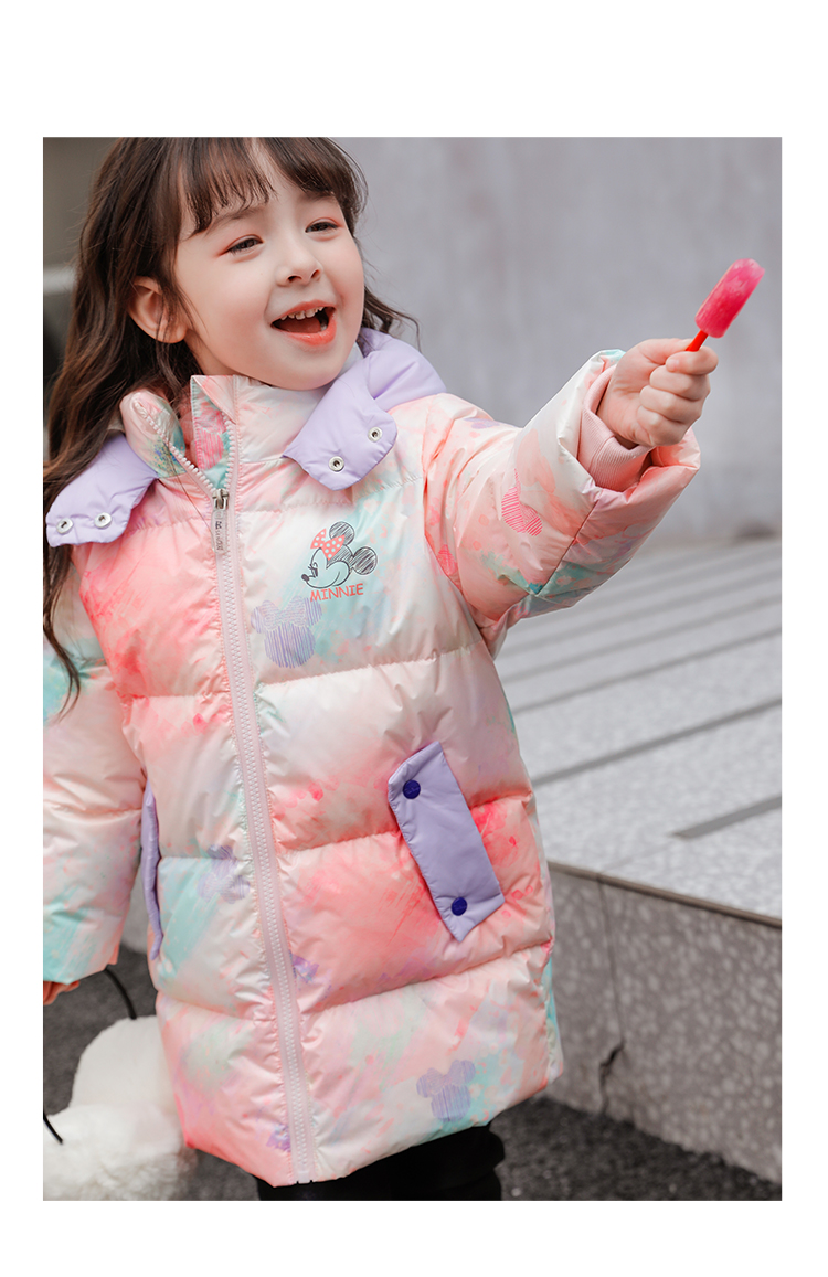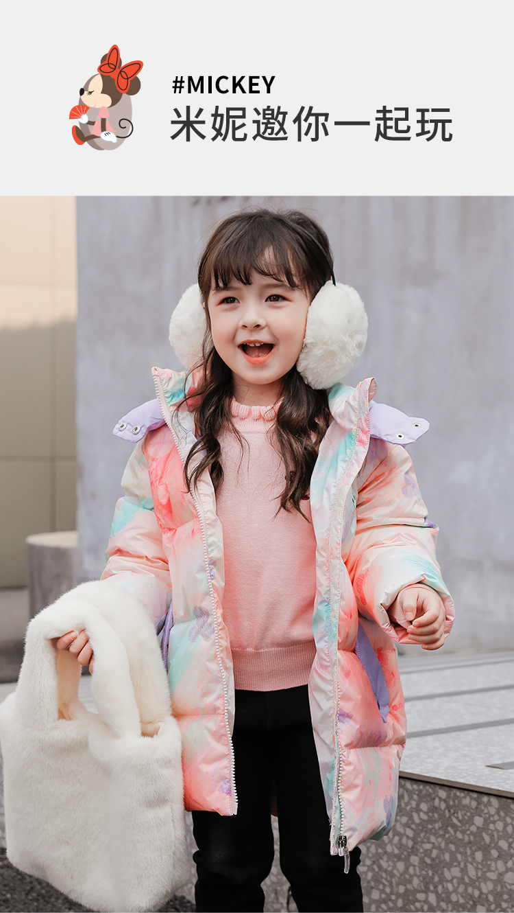 迪士尼冬季新品女童甜美中长款羽绒服婴幼儿防风外套224DS0793
