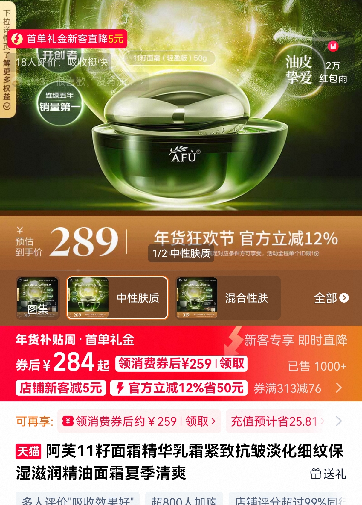 董洁直播间289一瓶都被拍光,成份优势 ,价格优势,太难抢货!