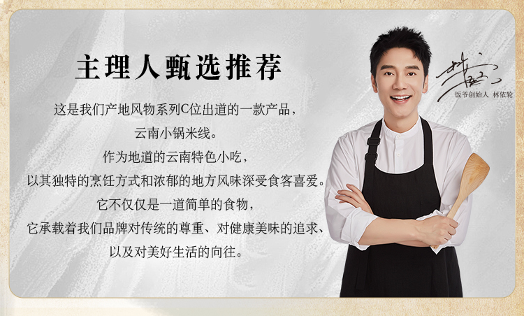 饭爷是由林依轮于2014年创立的快消食品品牌,定位中高端市场,主打健康调味品,将传统美食与现代烹饪技术相结合,既保留传统韵味又不失时尚元素。饭爷的云南小锅米线和佐饭香牛蘑王辣酱更以非凡口感和精湛工艺,成功征服全球美食评审团挑剔的味蕾,一举斩获食品界"奥斯卡级"大奖。