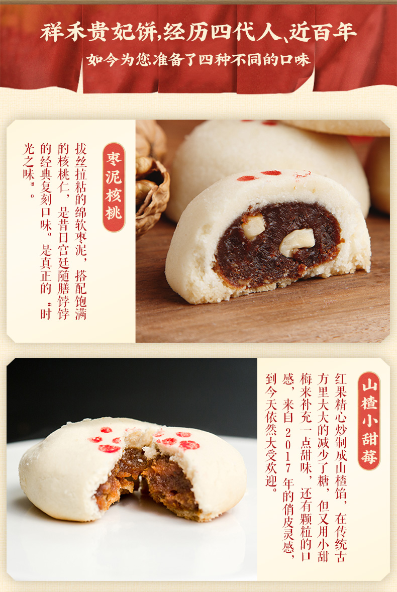 【功夫点心】非遗手作!正宗八瓣儿枣花酥500g+贵妃饼(枣泥核桃)500g