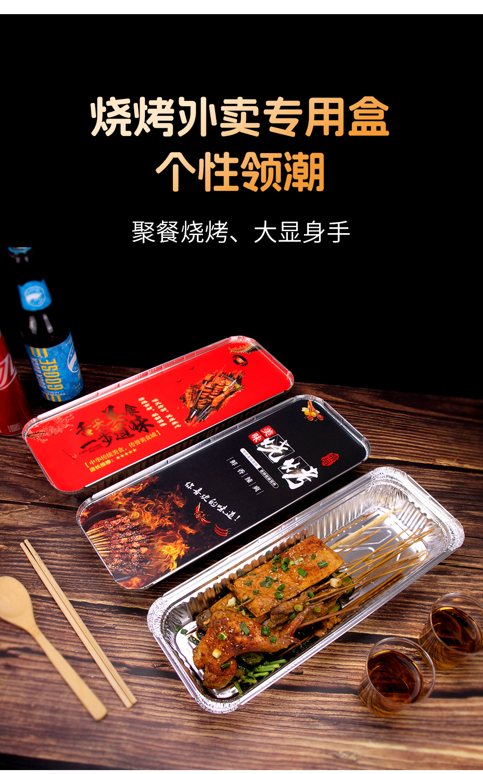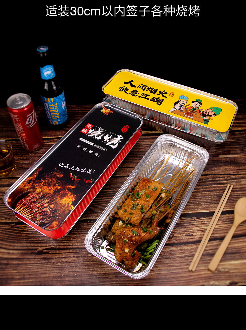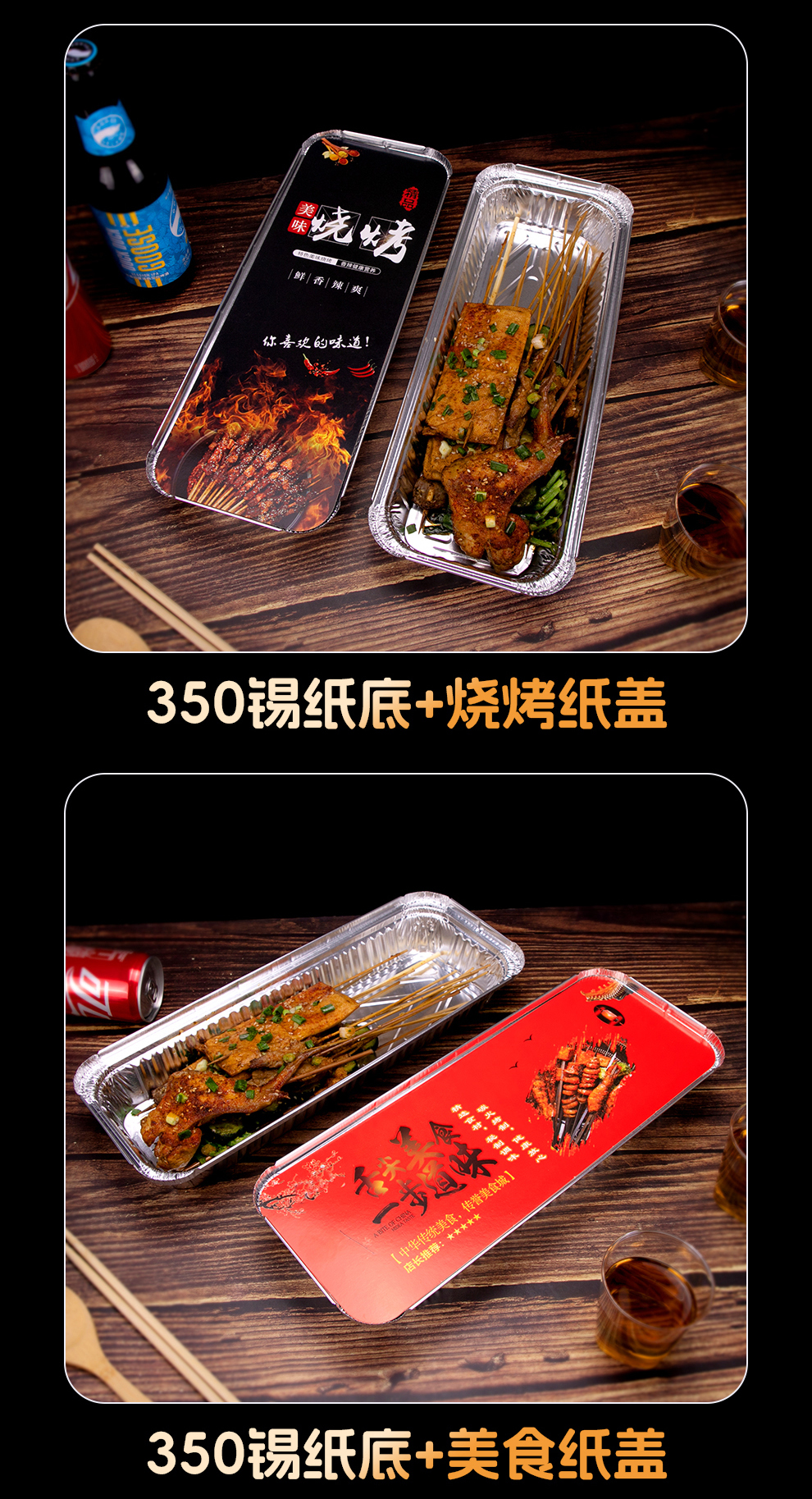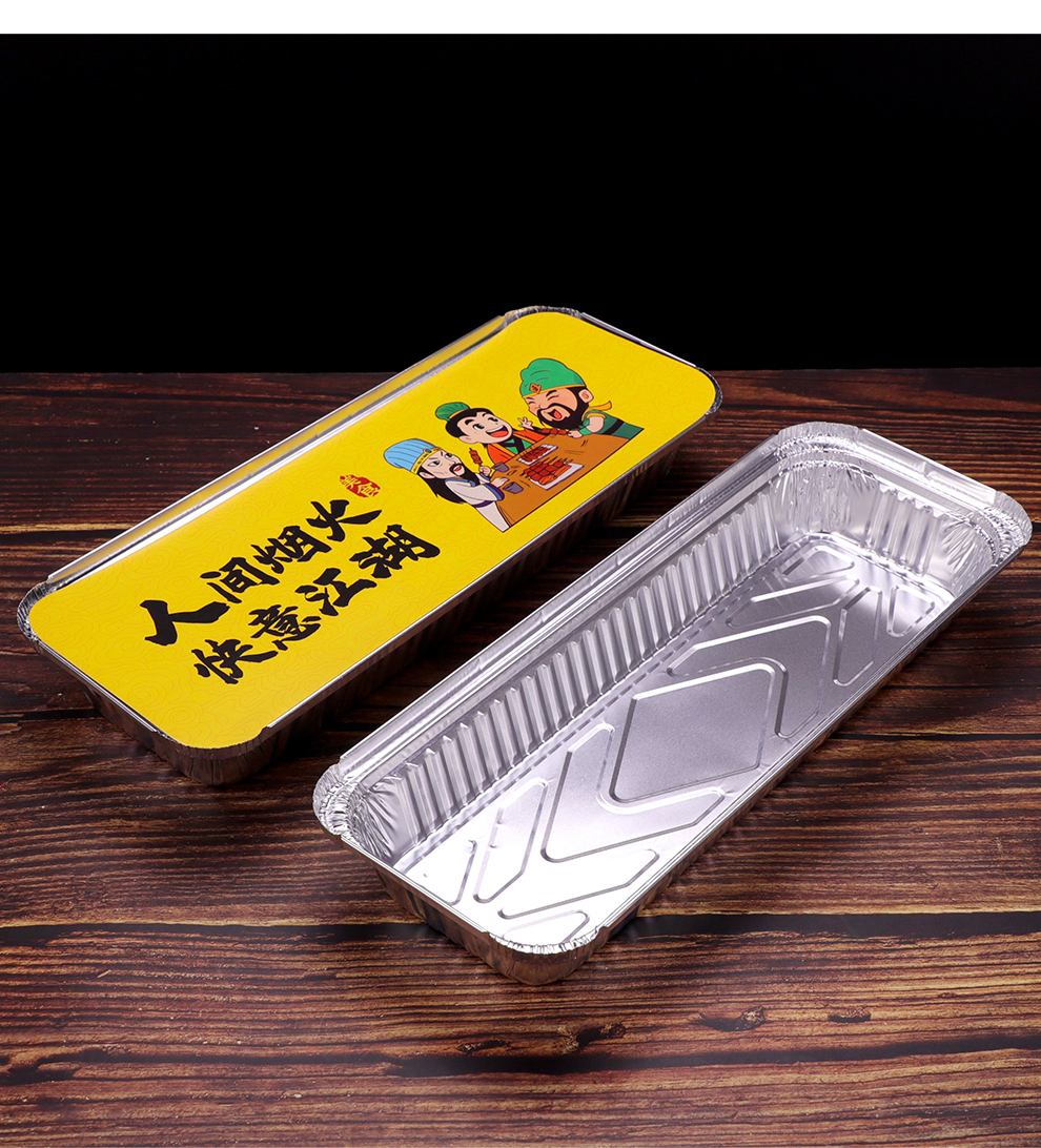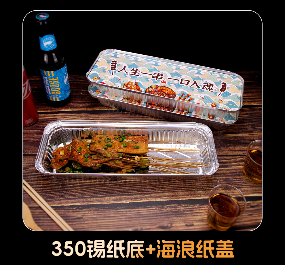 喇叭花350烤串炸串锡纸盒烧烤打包长方形一次性外卖保温铝箔餐盒