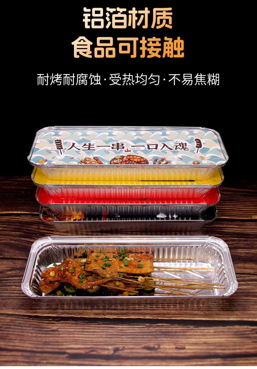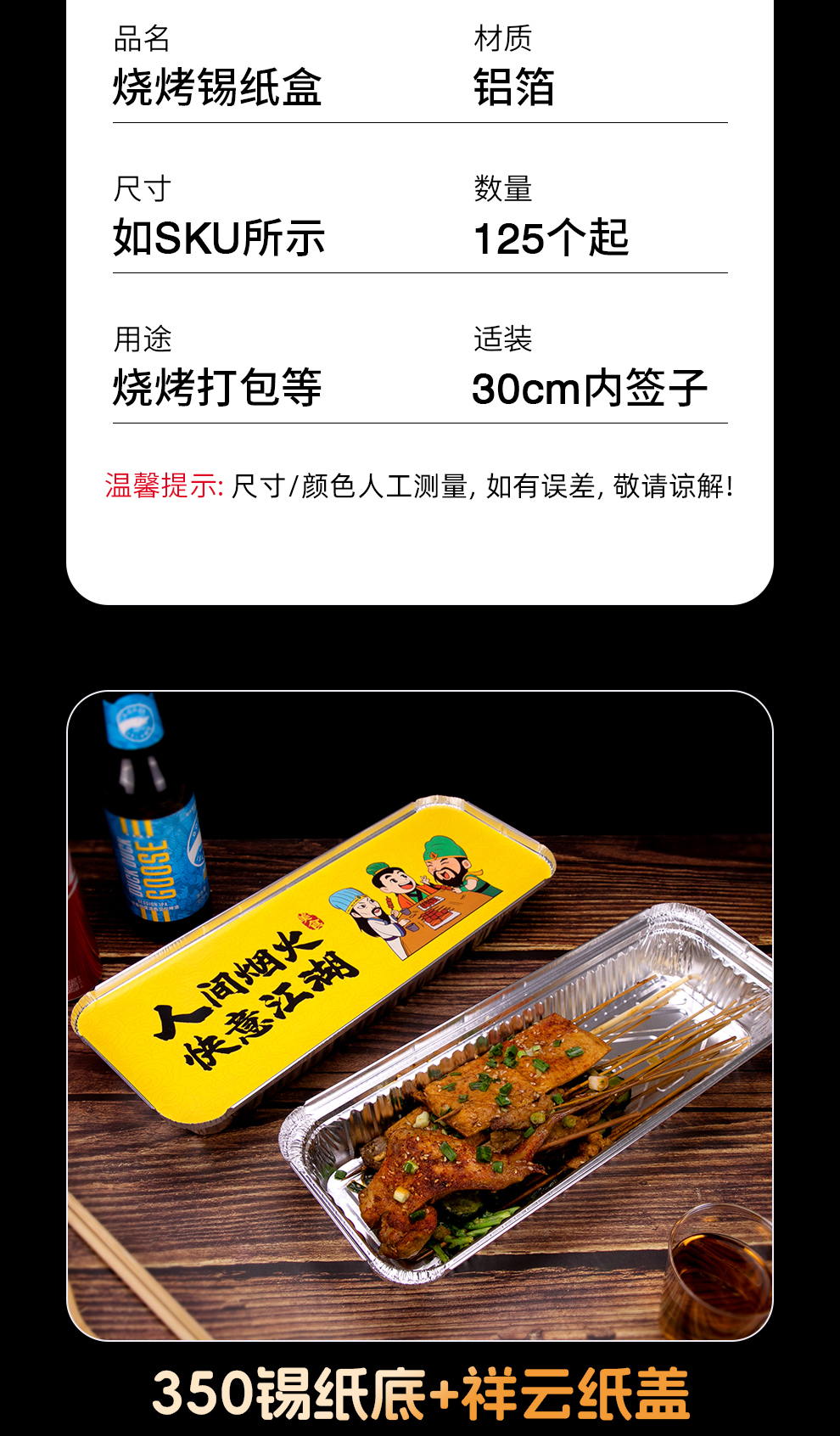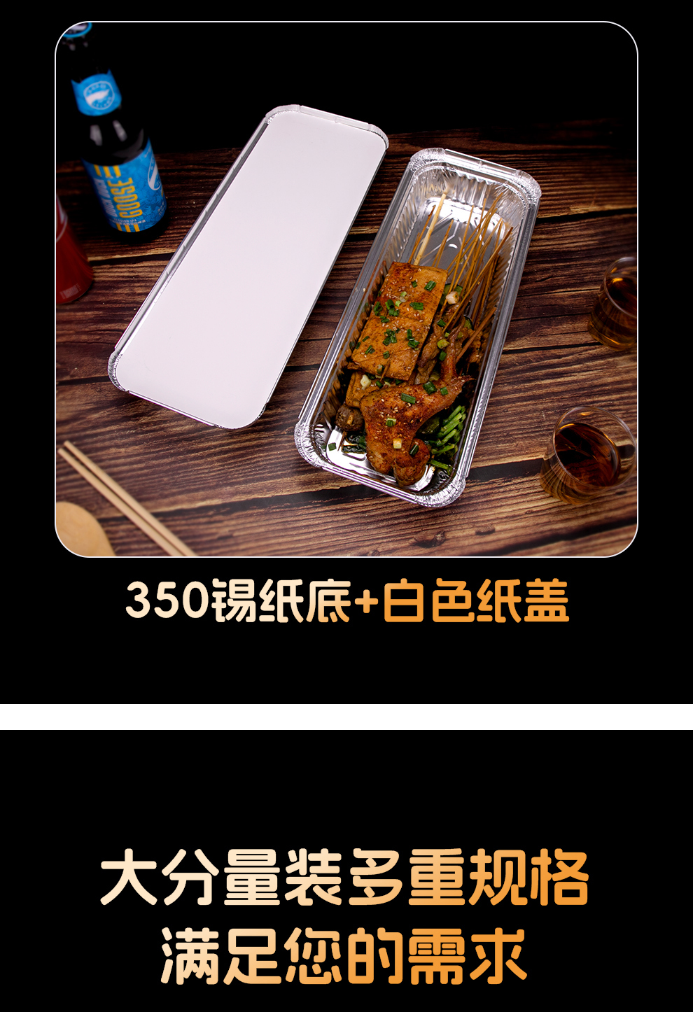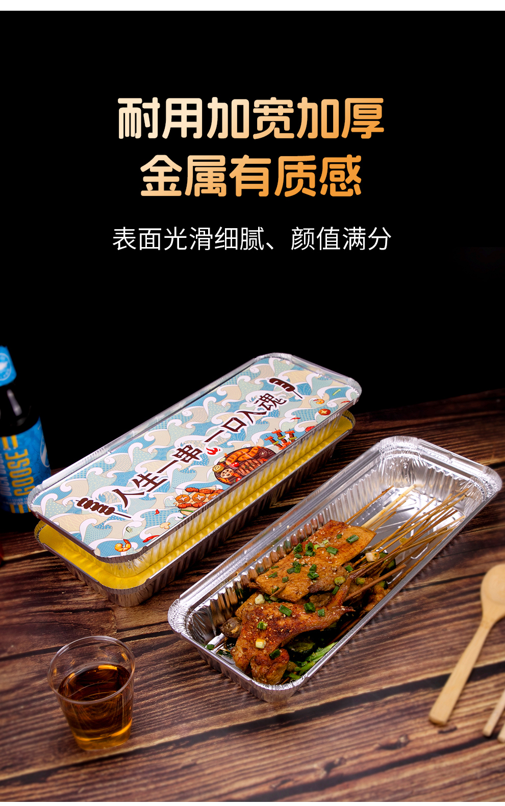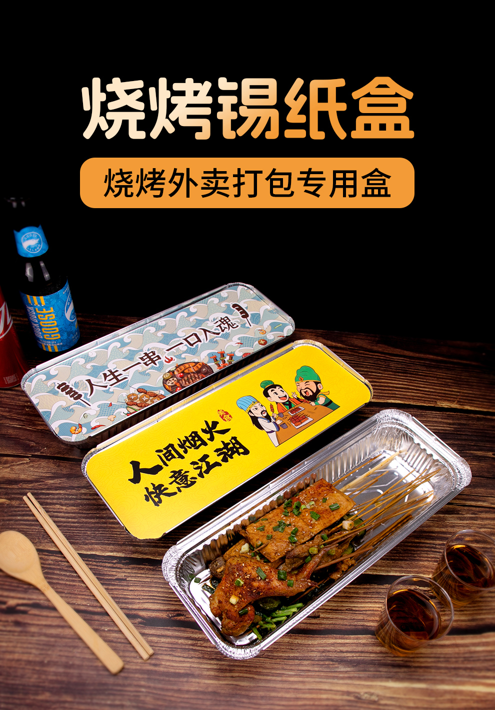 喇叭花350烤串炸串锡纸盒烧烤打包长方形一次性外卖保温铝箔餐盒