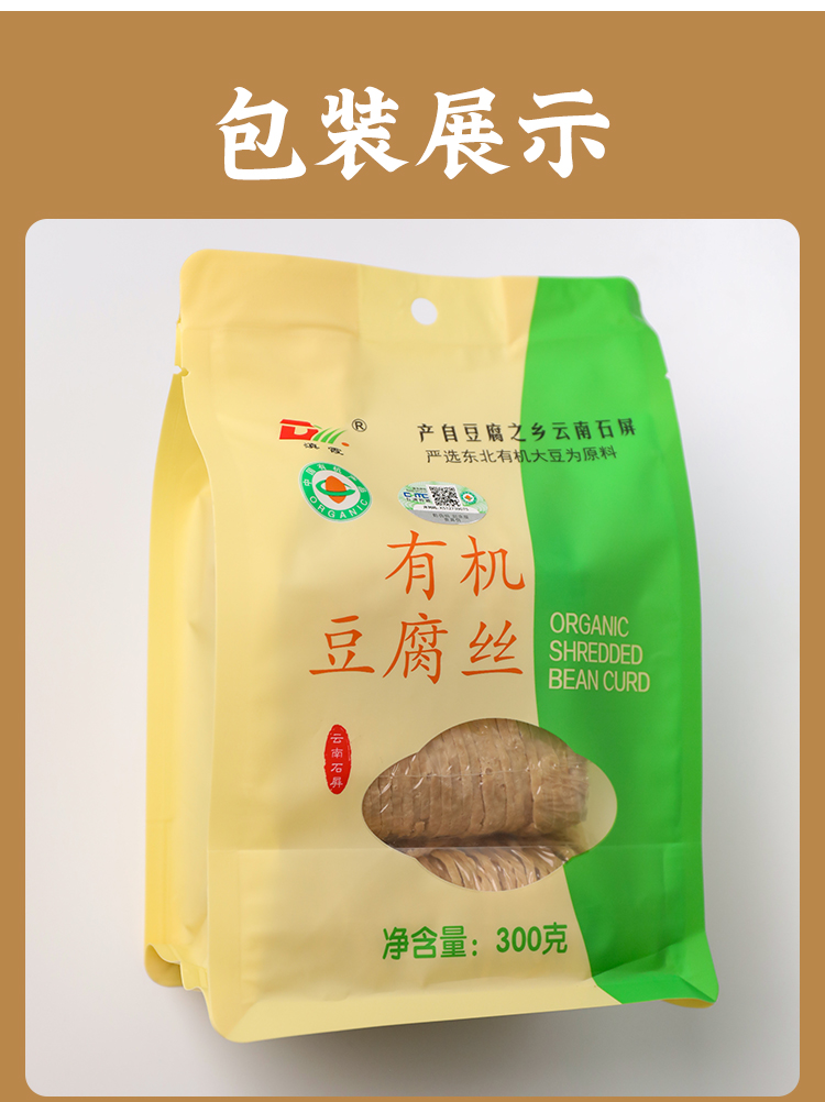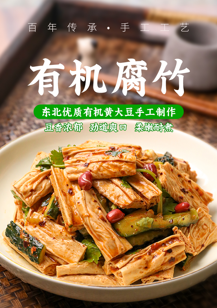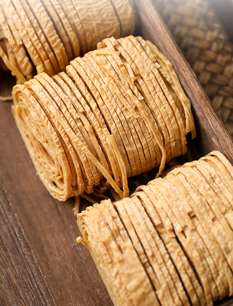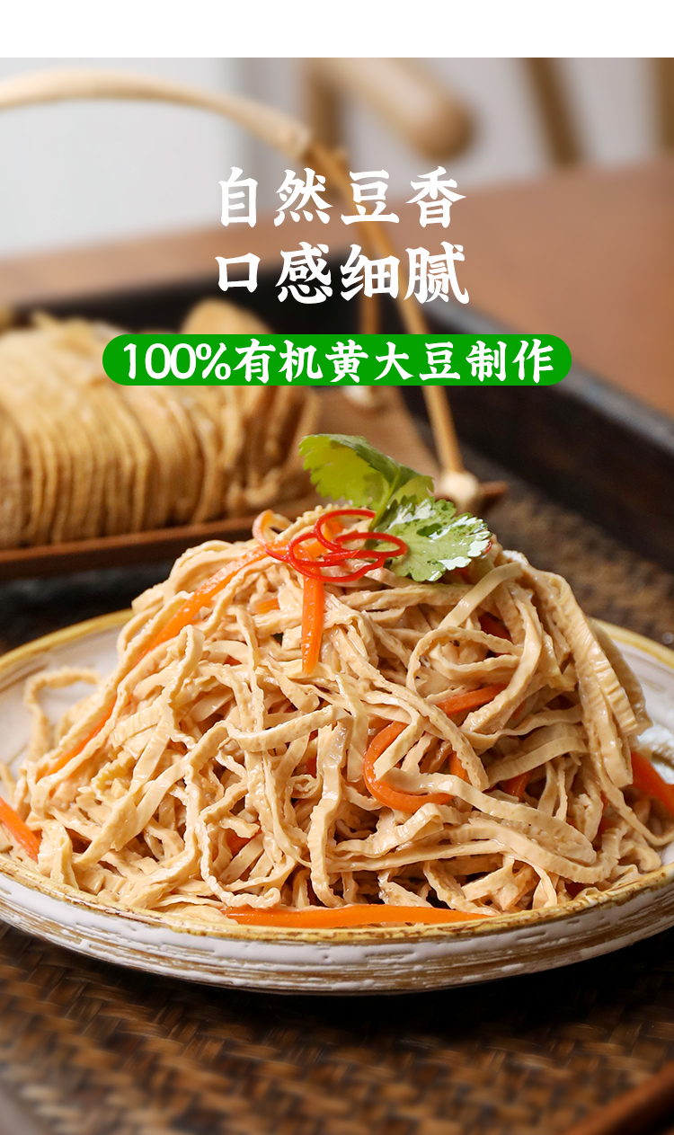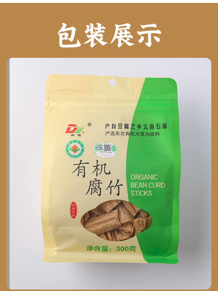 有机豆皮、腐竹、豆腐丝制作工艺近似,只是最终切割晾晒成不同的形态。豆皮适合涮火锅,豆腐丝适合凉拌,腐竹最筋道适合红烧。