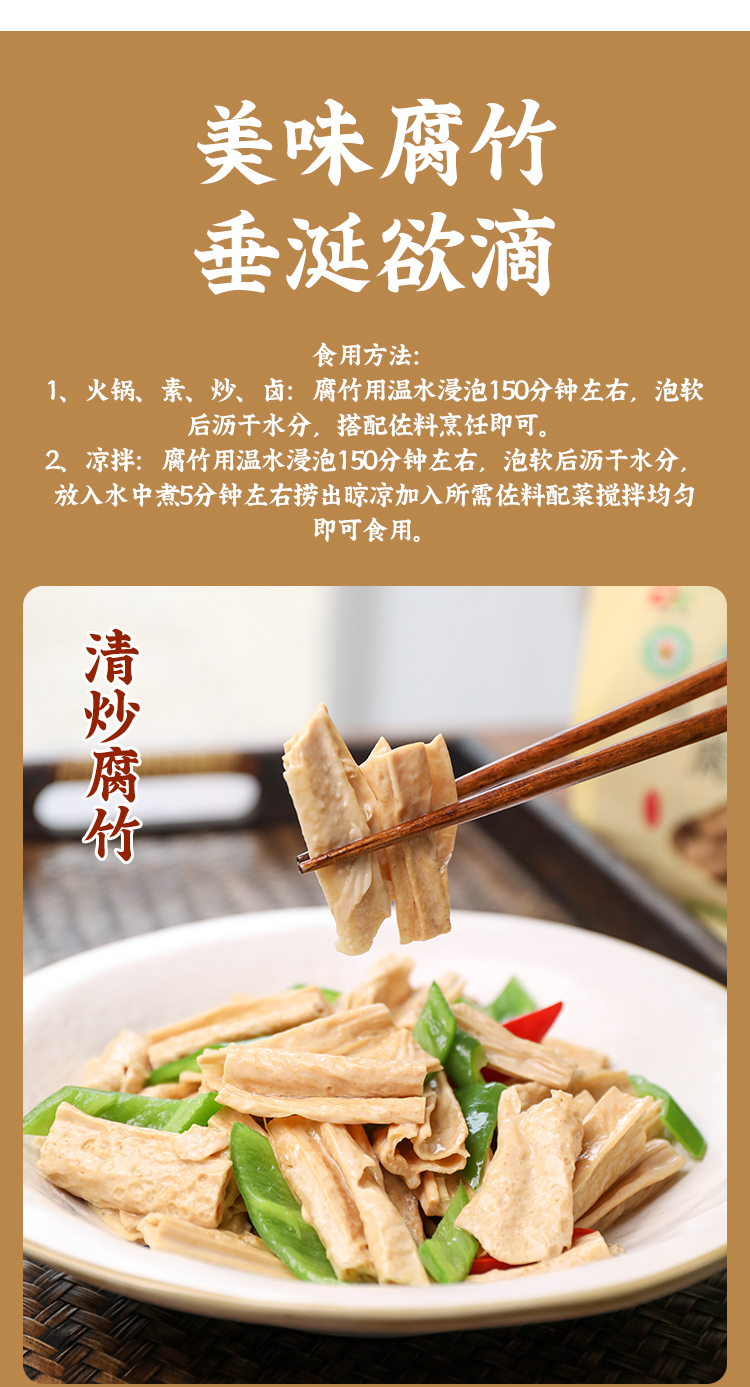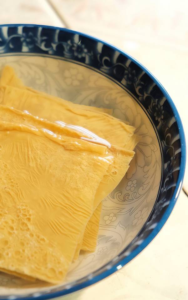 豆皮建议冷水泡发25-30分钟,腐竹泡发2小时