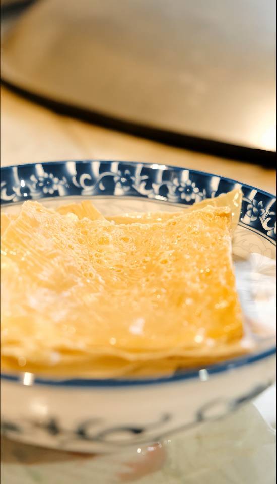 手工起豆皮,一盒豆浆豆皮只有一层,也就是大家说的【头层豆皮】。