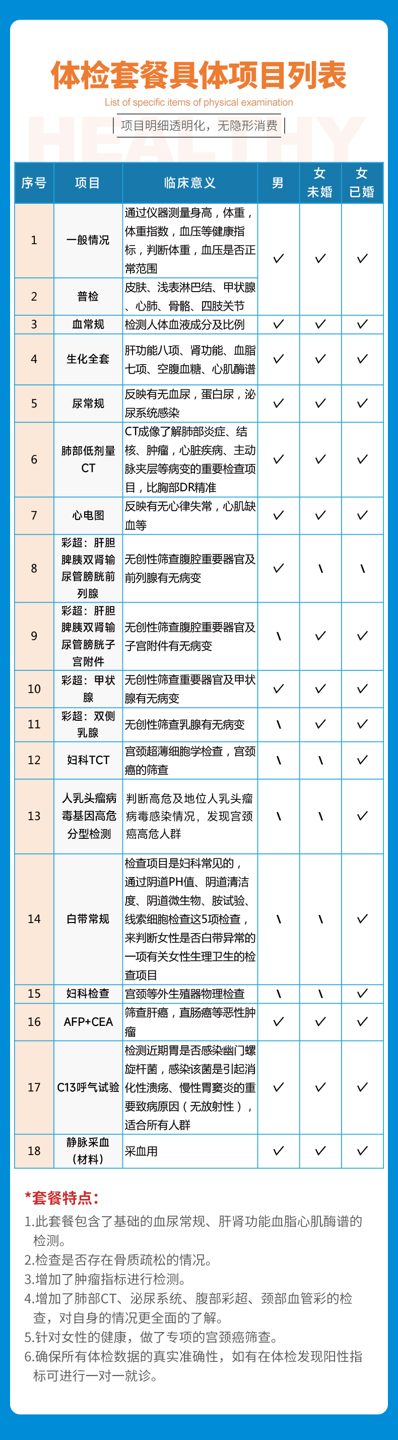 平安呵护健康体检套餐