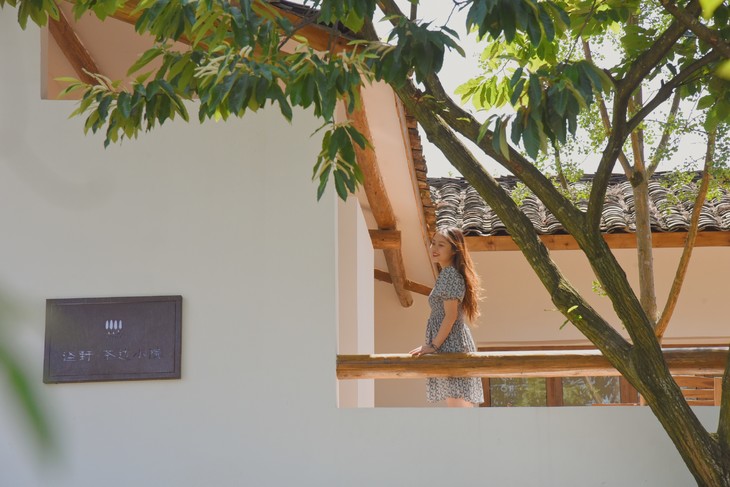 茶园的阳光四散无遮挡,但小院里透过枝头的光线是柔和的,落在地面勾勒出树的轮廓。
