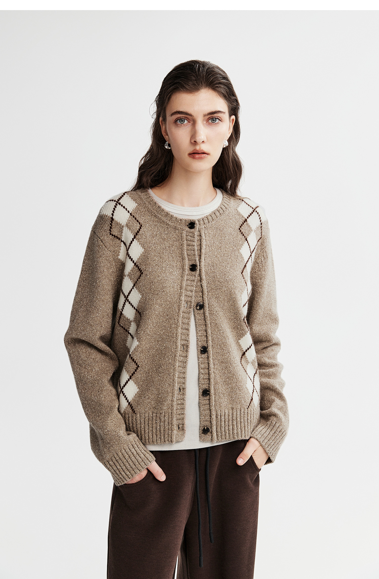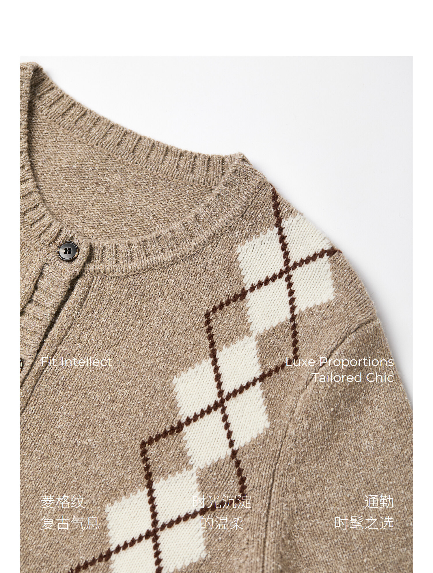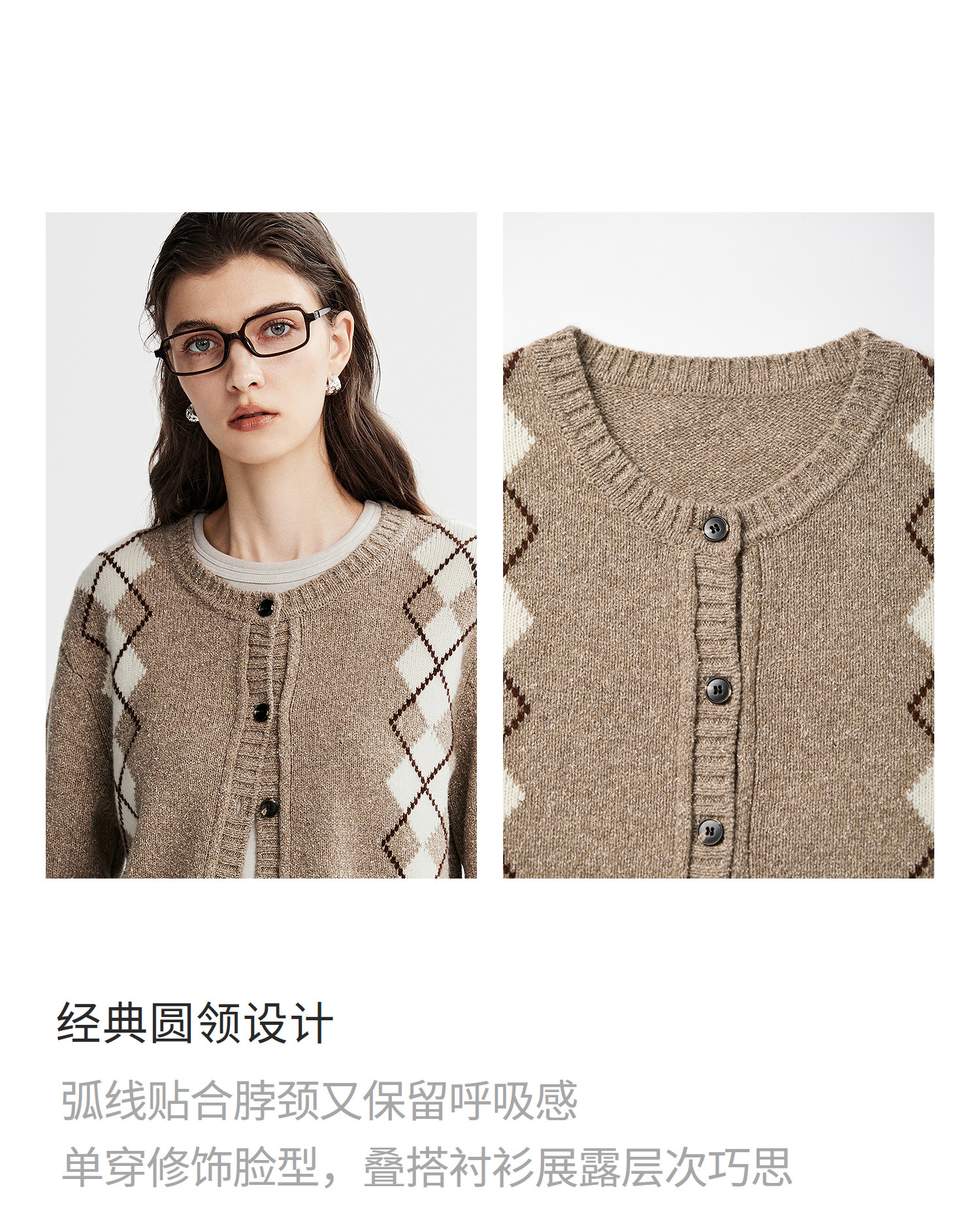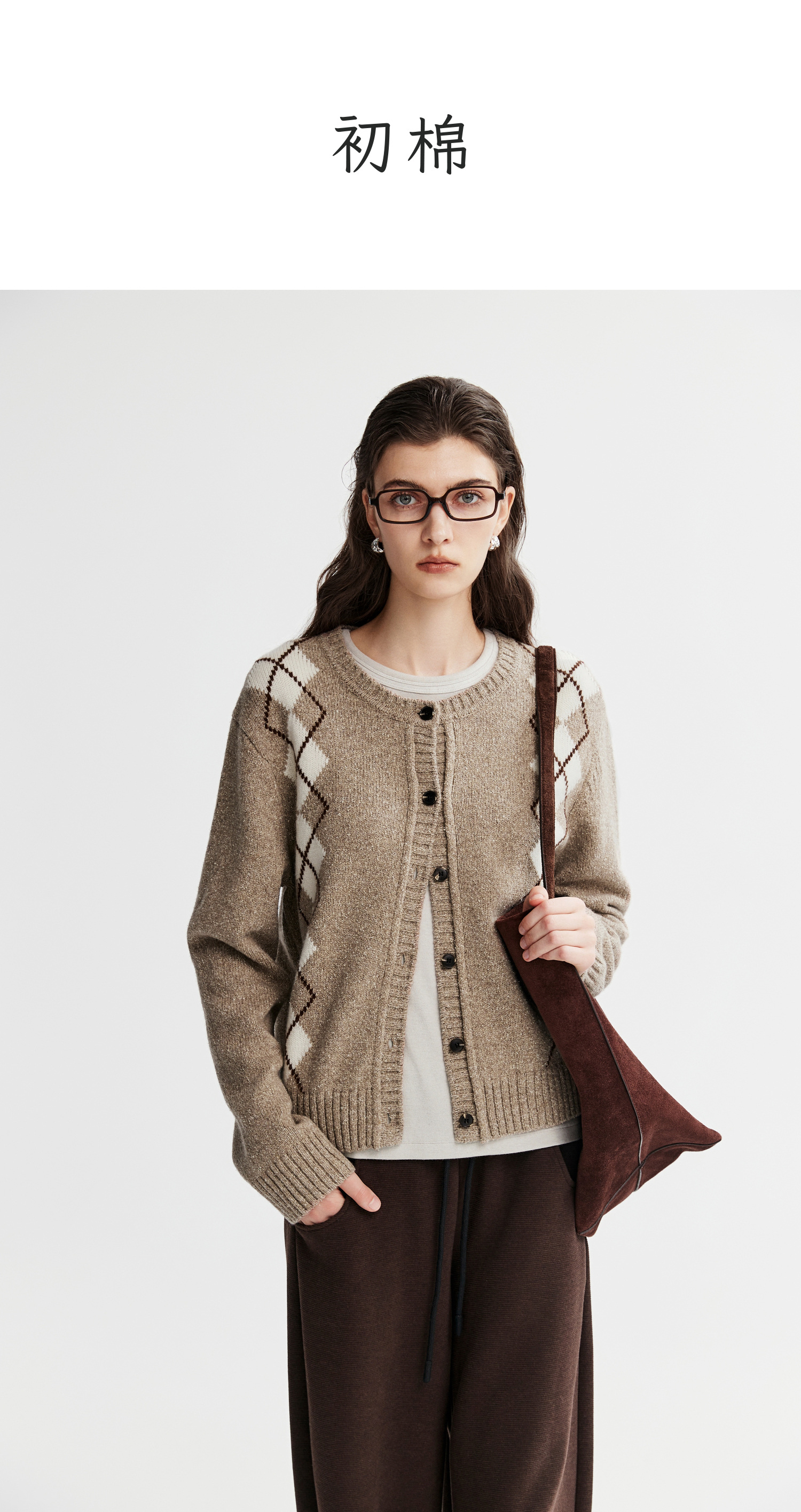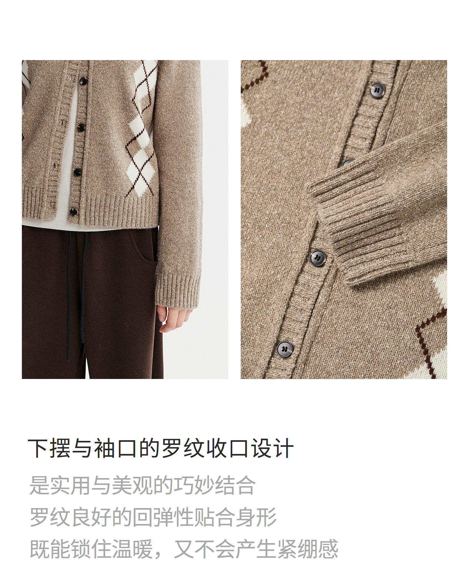 棉仓366635016-菱形格纹针织开衫