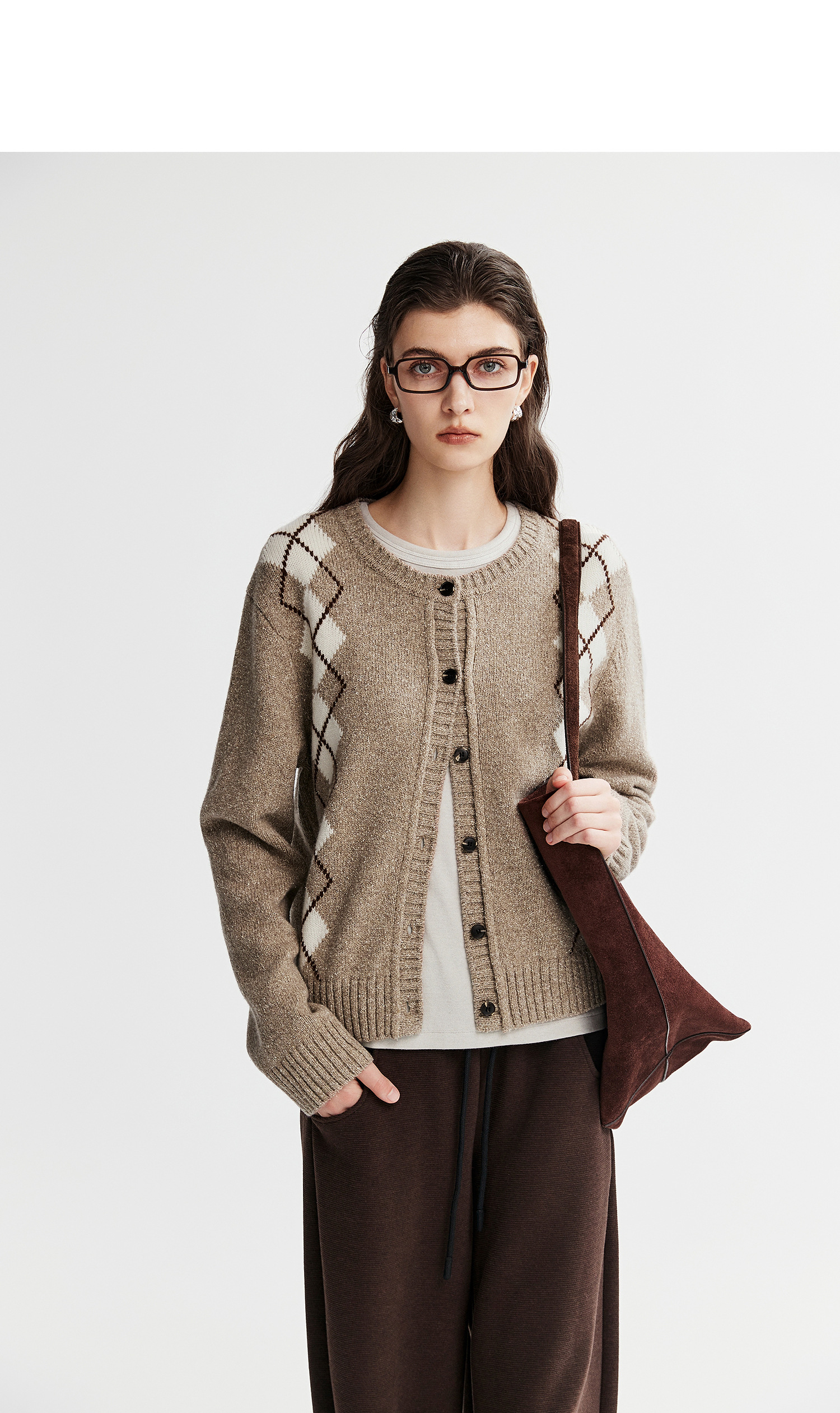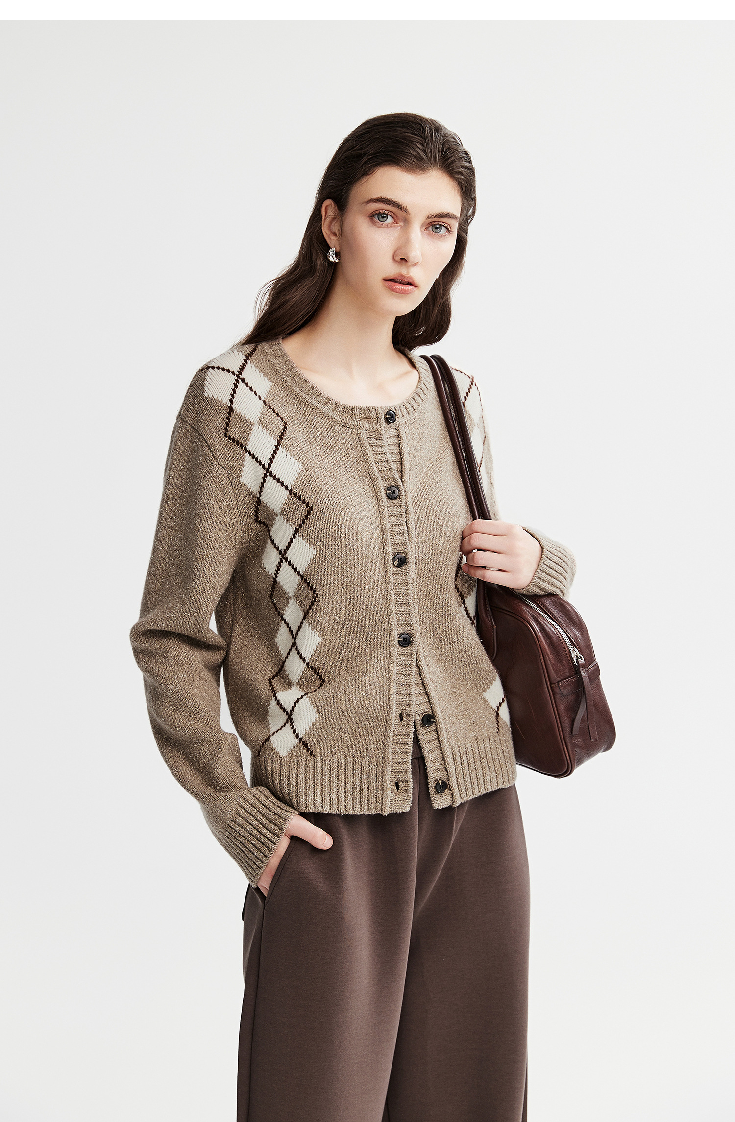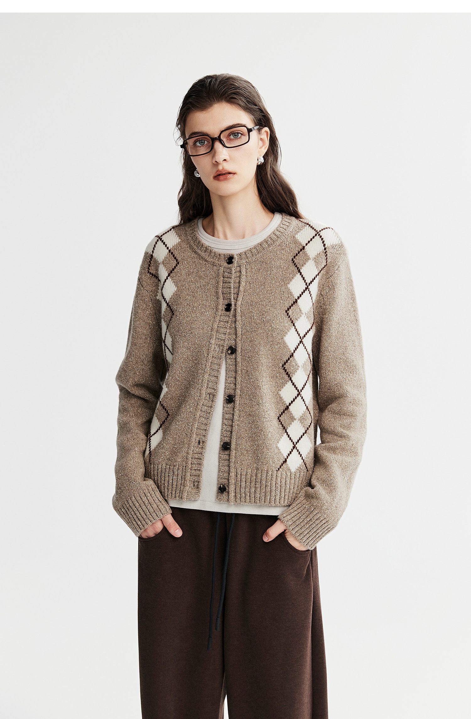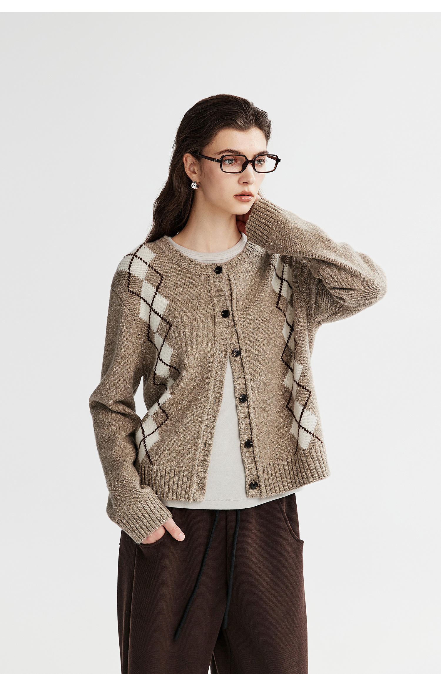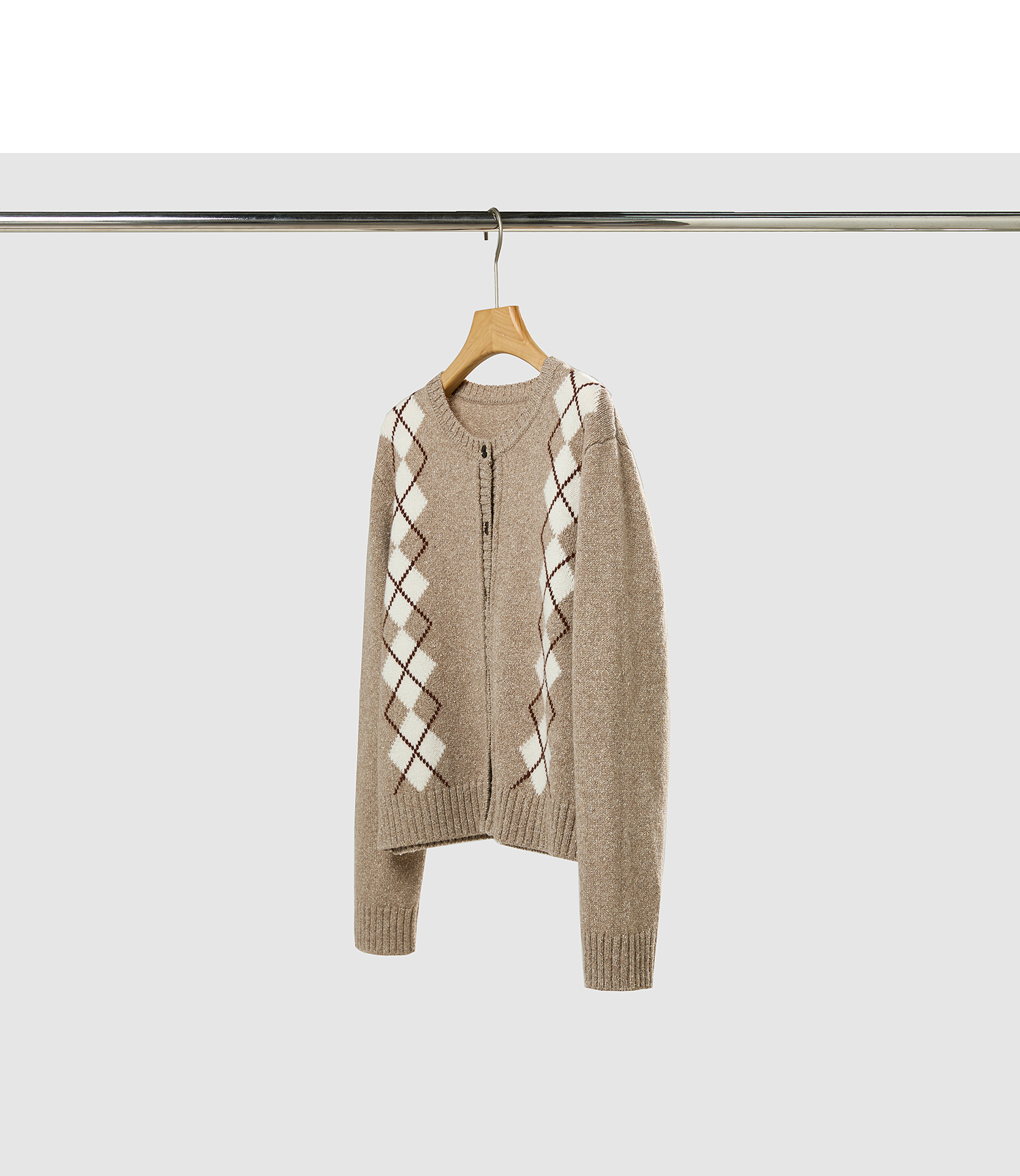棉仓366635016-菱形格纹针织开衫