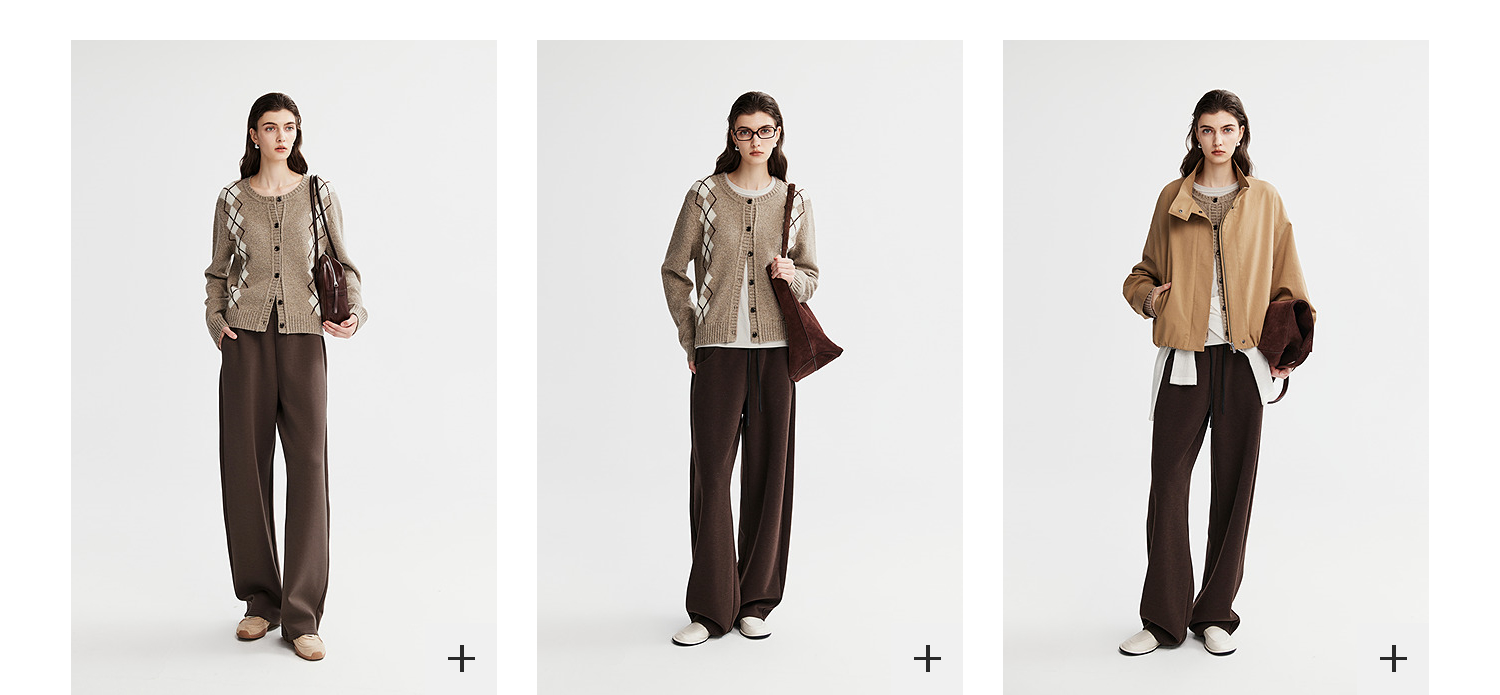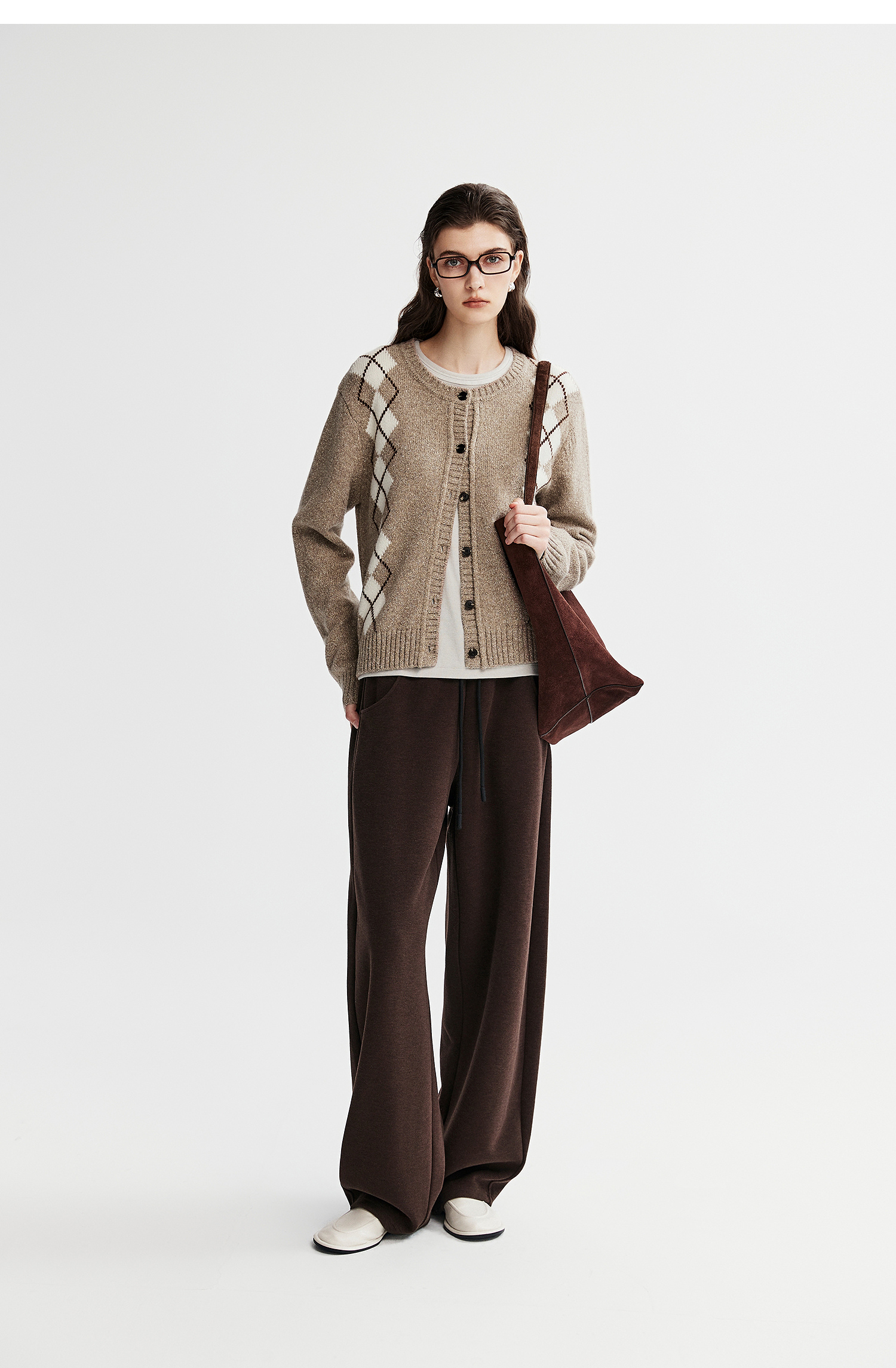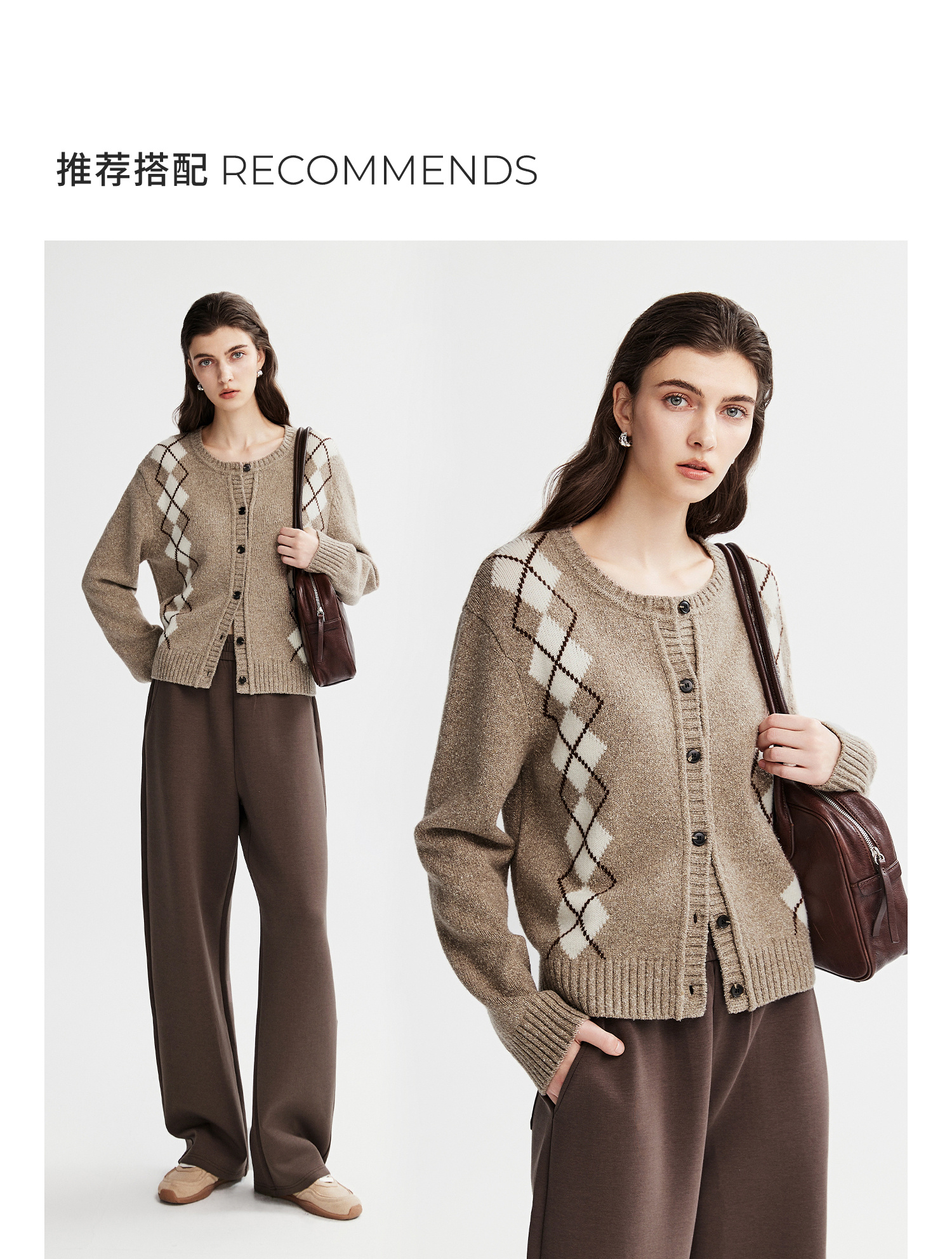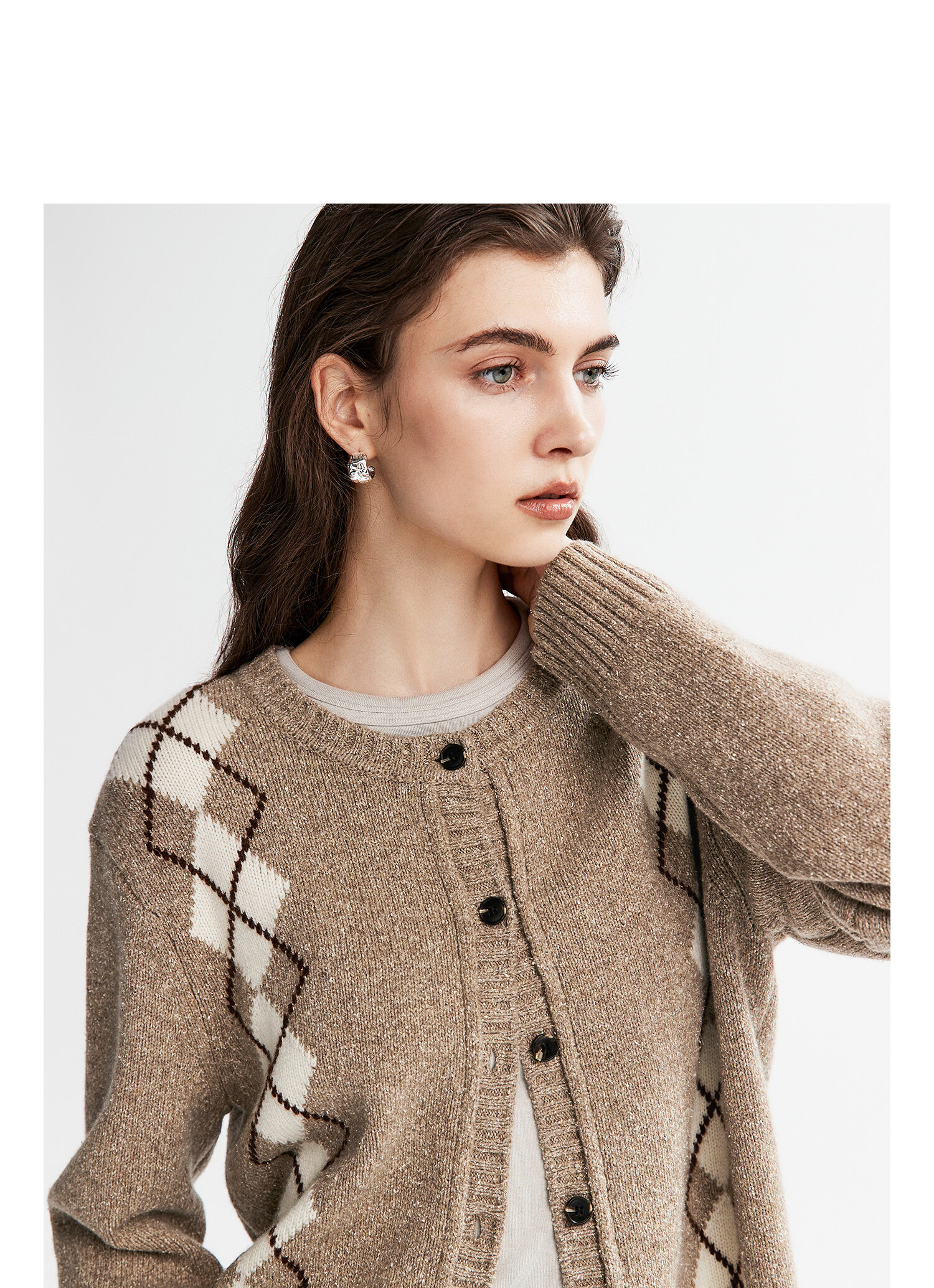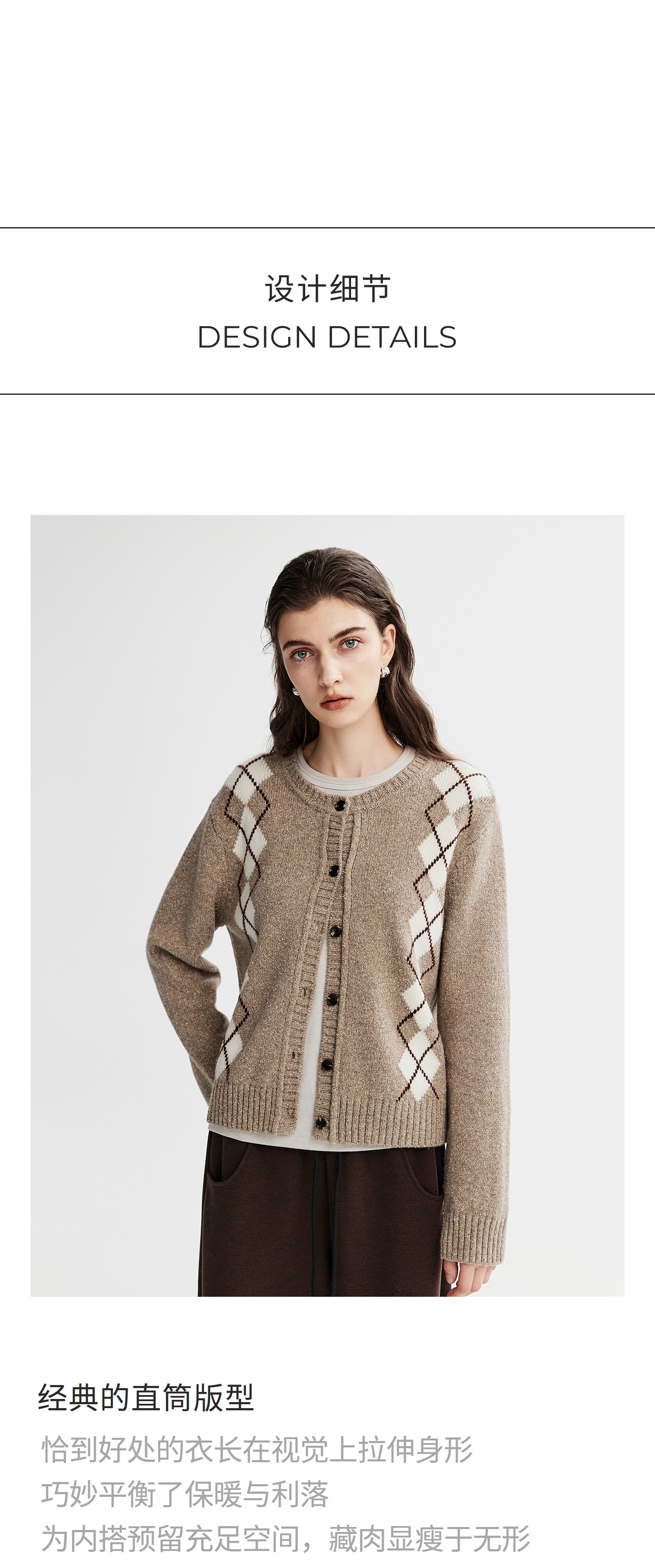 棉仓366635016-菱形格纹针织开衫
