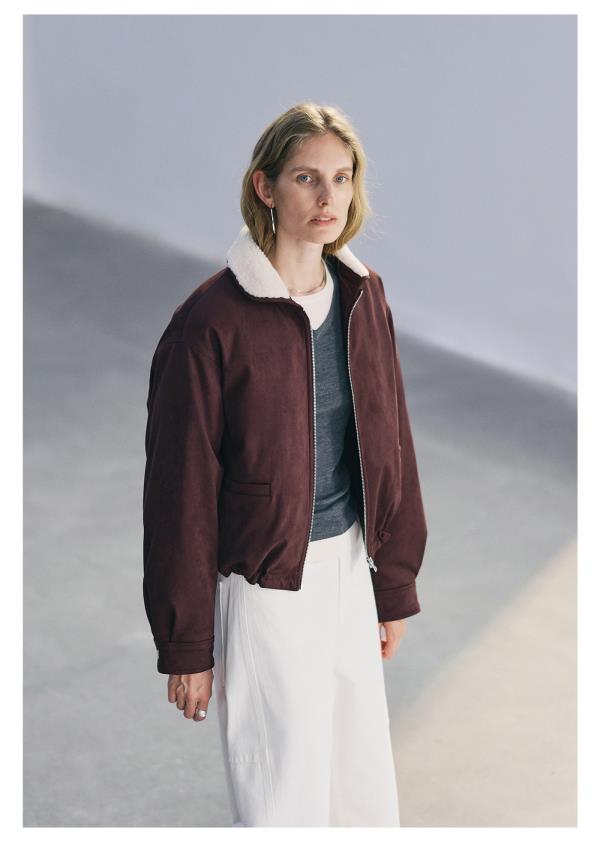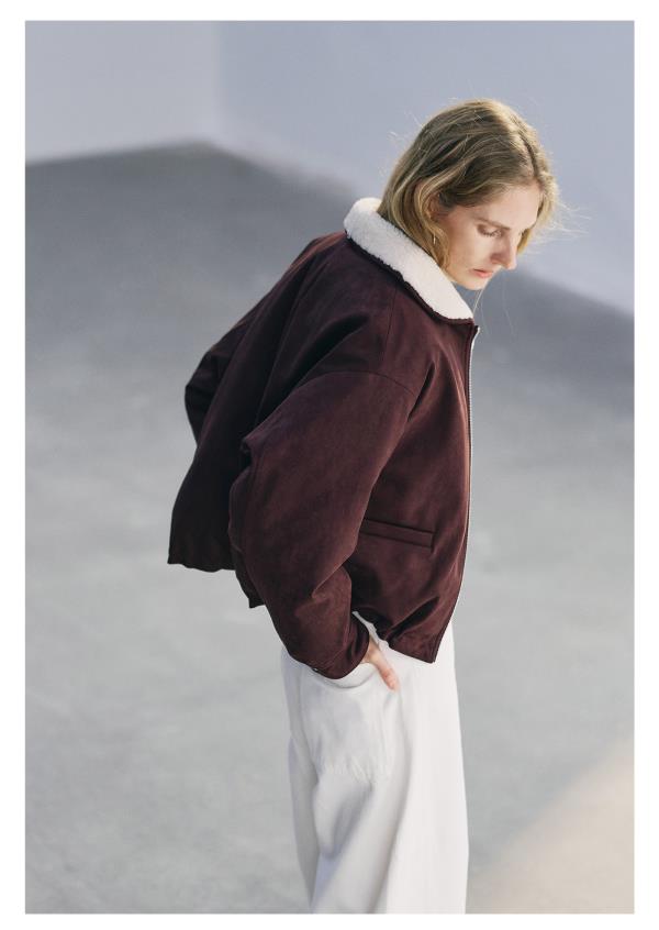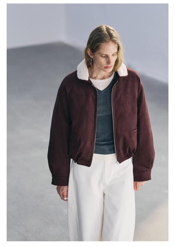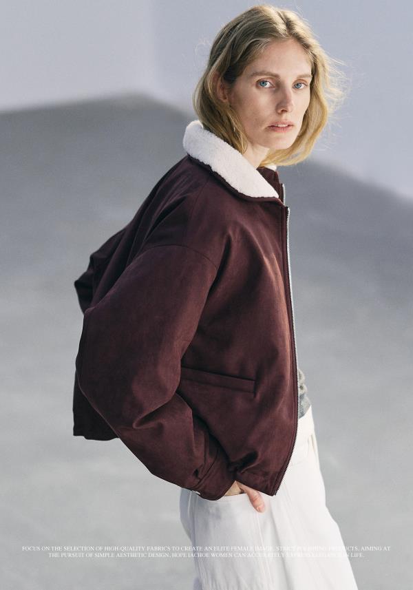 棉仓3671515004- 95%白鹅绒环保麂皮绒仿羊绒皮面包羽绒服