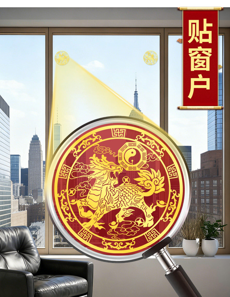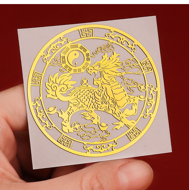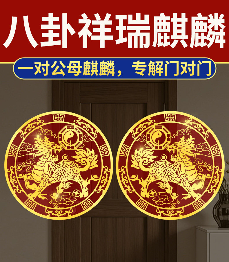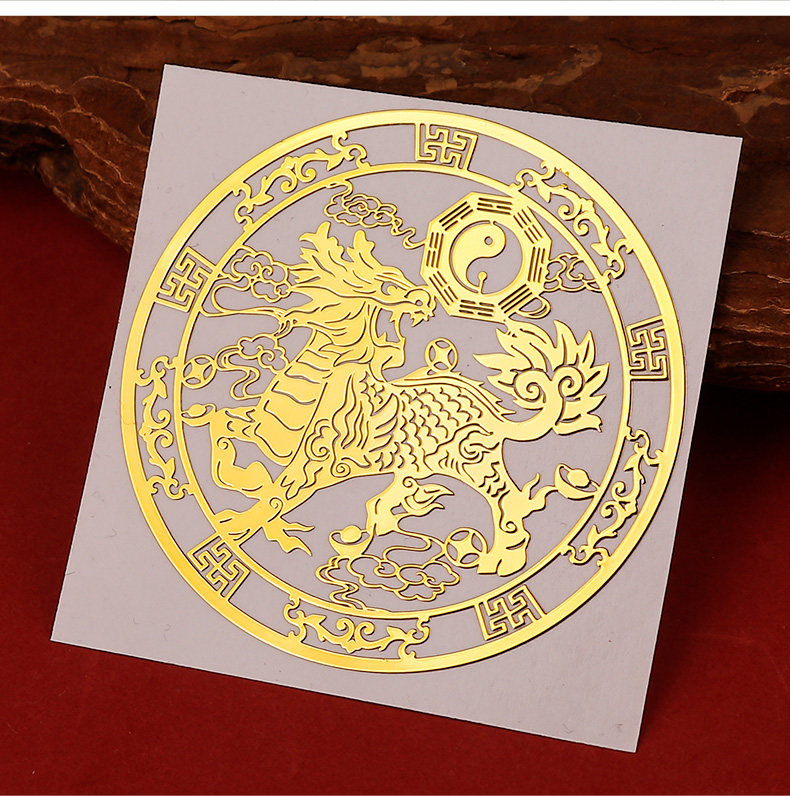 一对麒麟金属贴