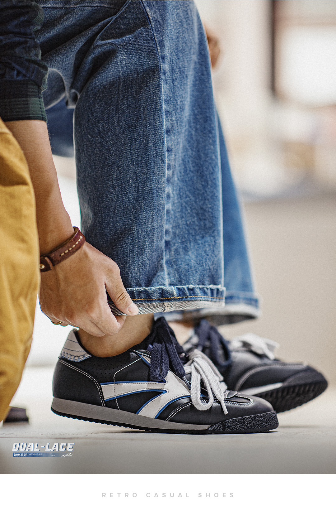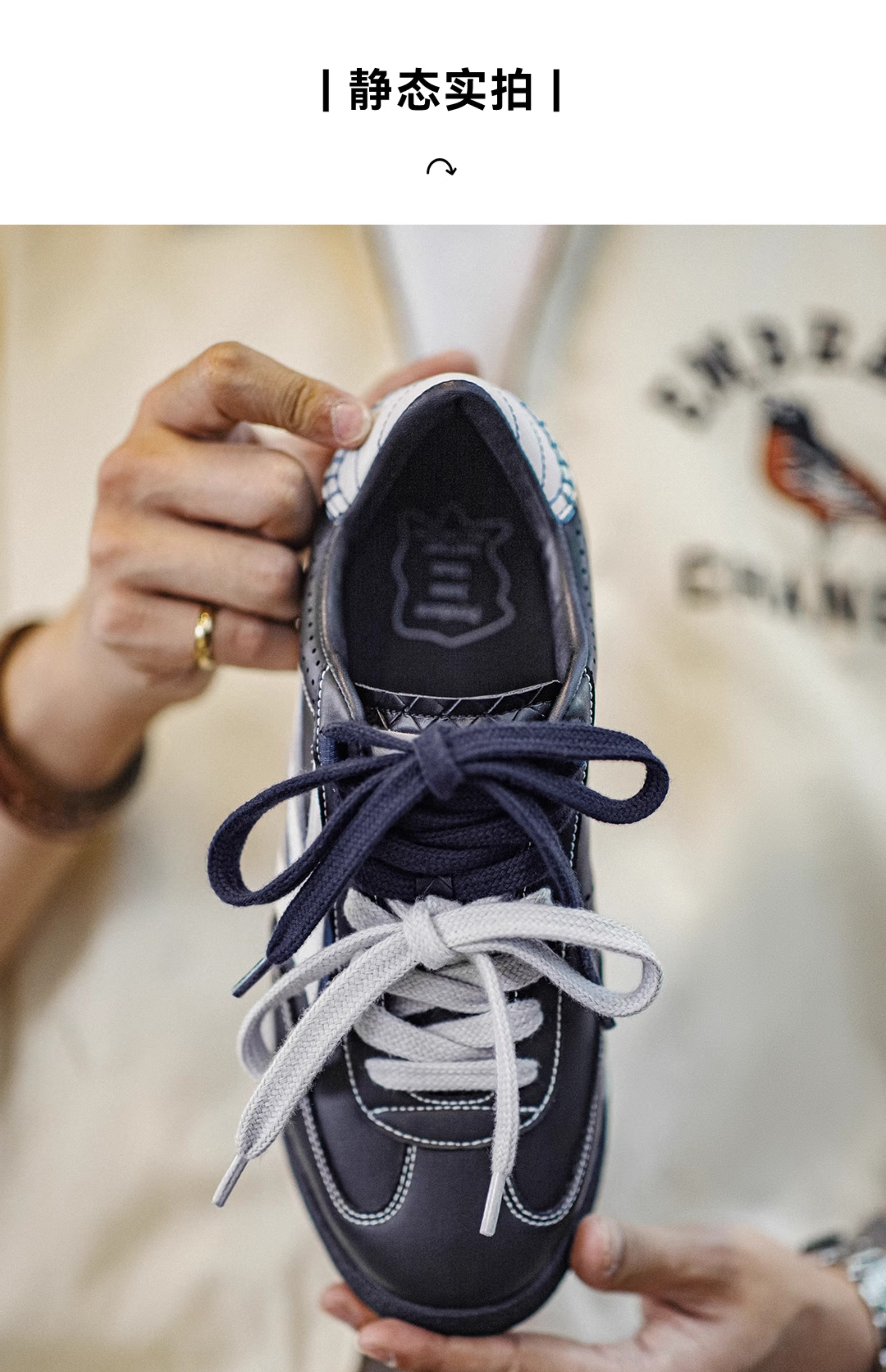 马登双鞋带蓝色德训鞋夏季男新款百搭软底平底运动休闲复古阿甘鞋