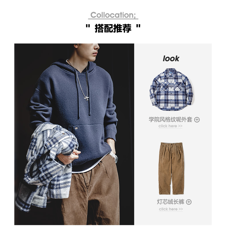 工装优选 美式休闲重磅连帽针织衫卫衣cityboy套头加厚外套男秋冬