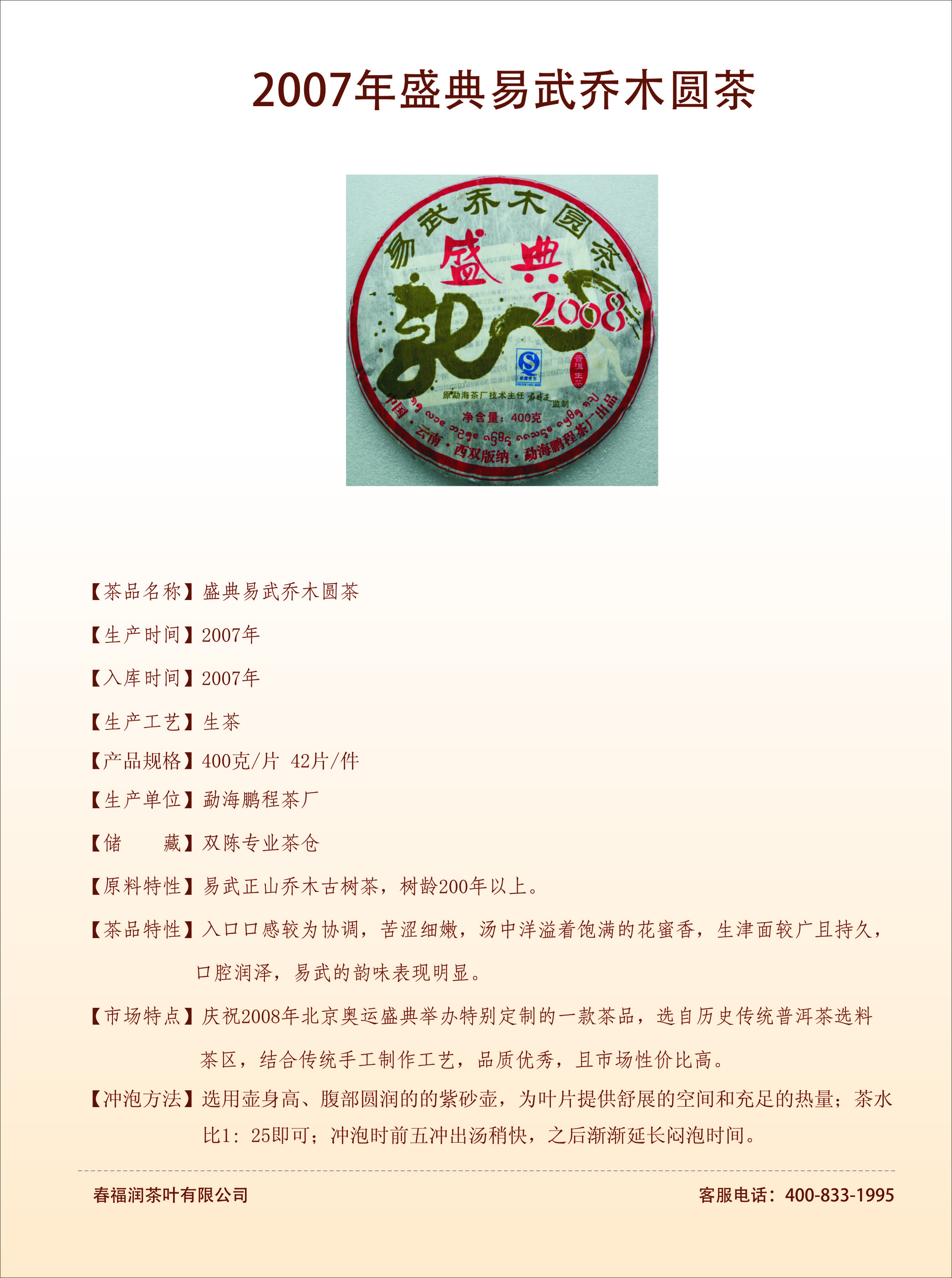 2007年盛典易武乔木圆茶