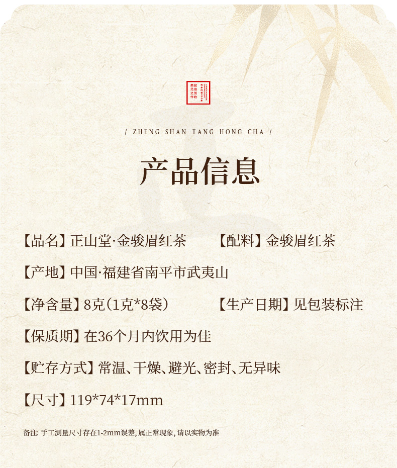 正山堂 金骏眉 红茶特制金骏眉茶叶特级私享装小袋装8g