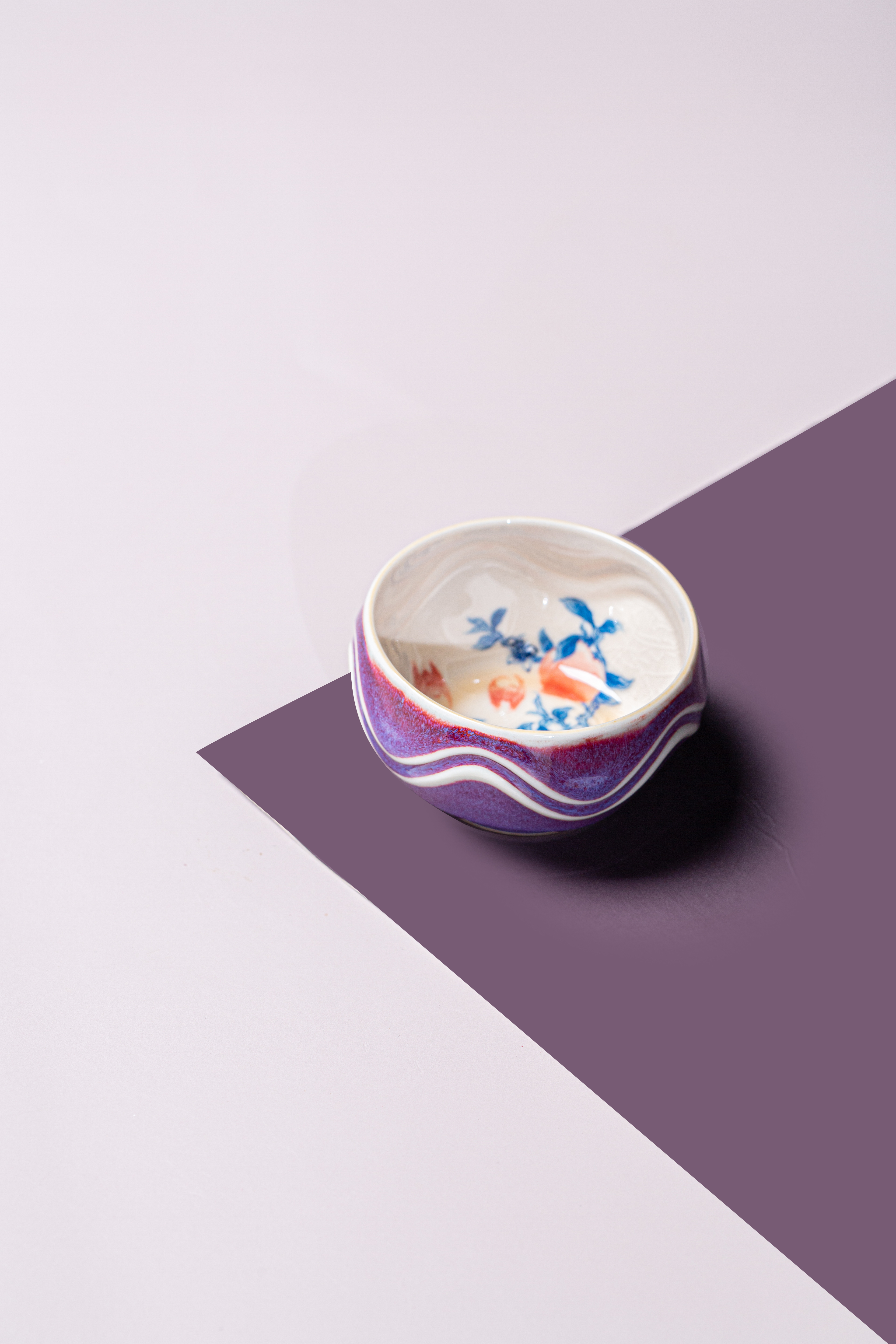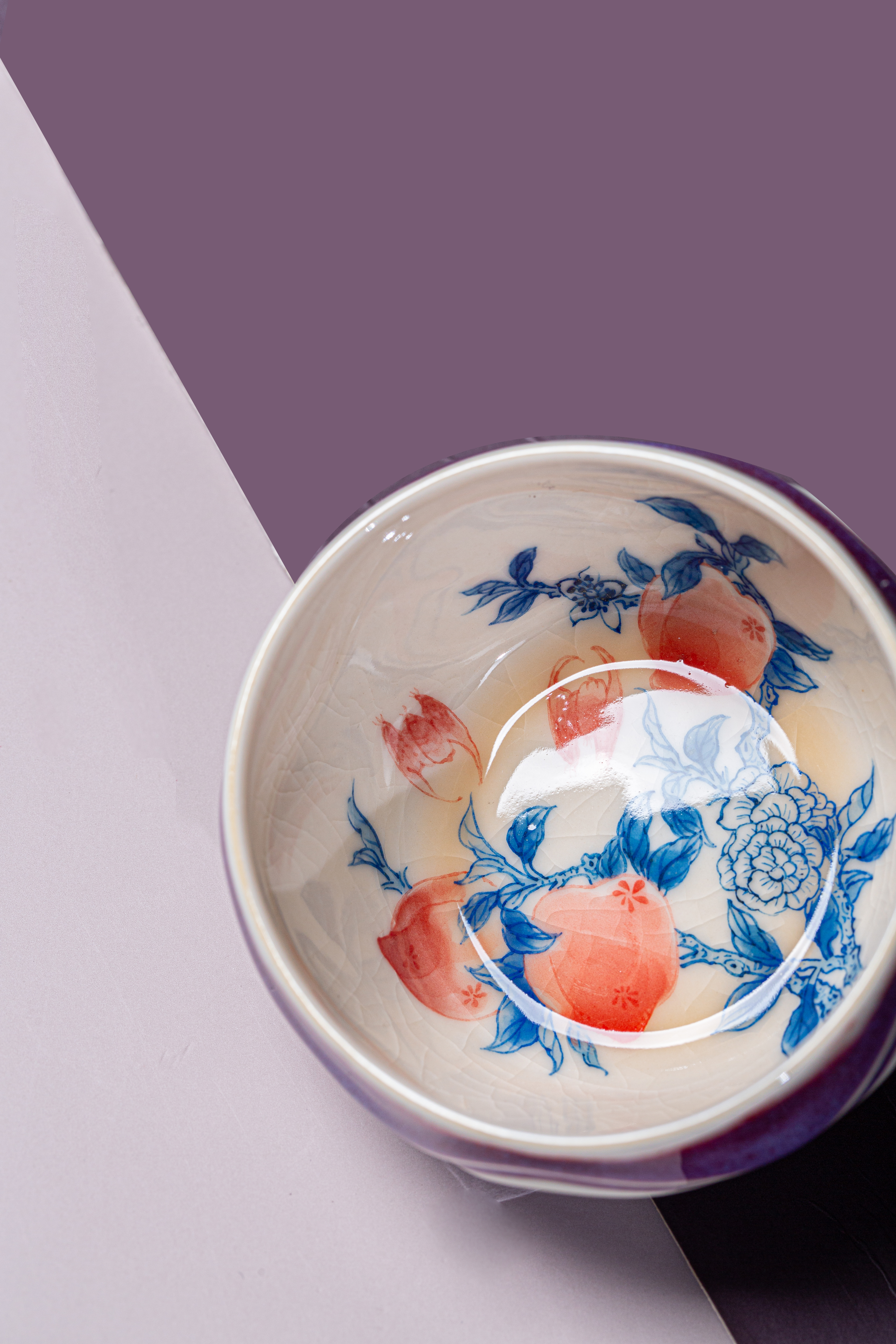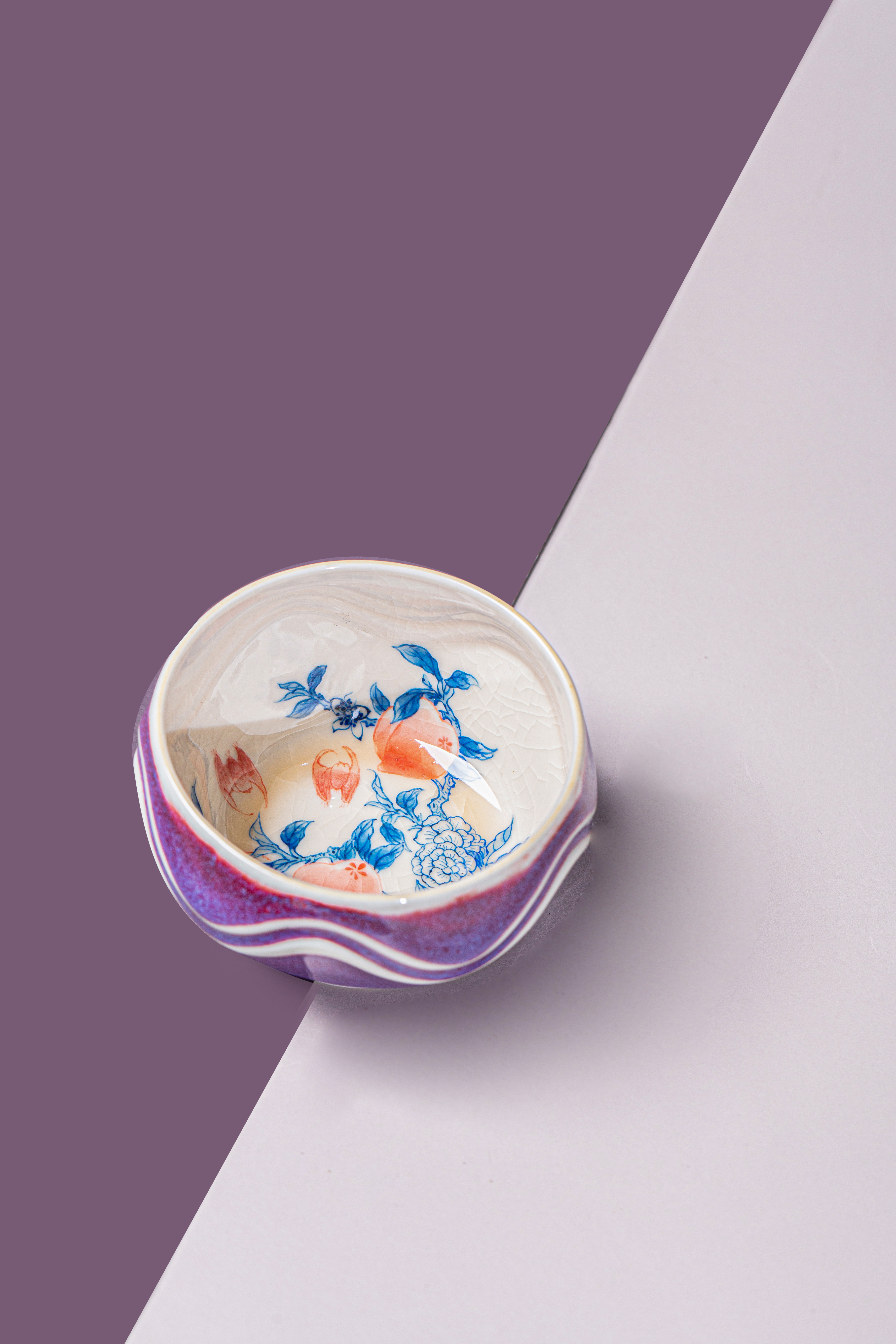 问鼎钧瓷梦鼎鹅黄青花玹红杯(红桃杏色)