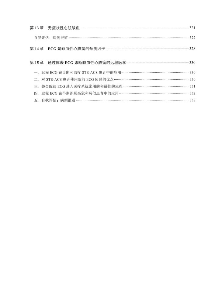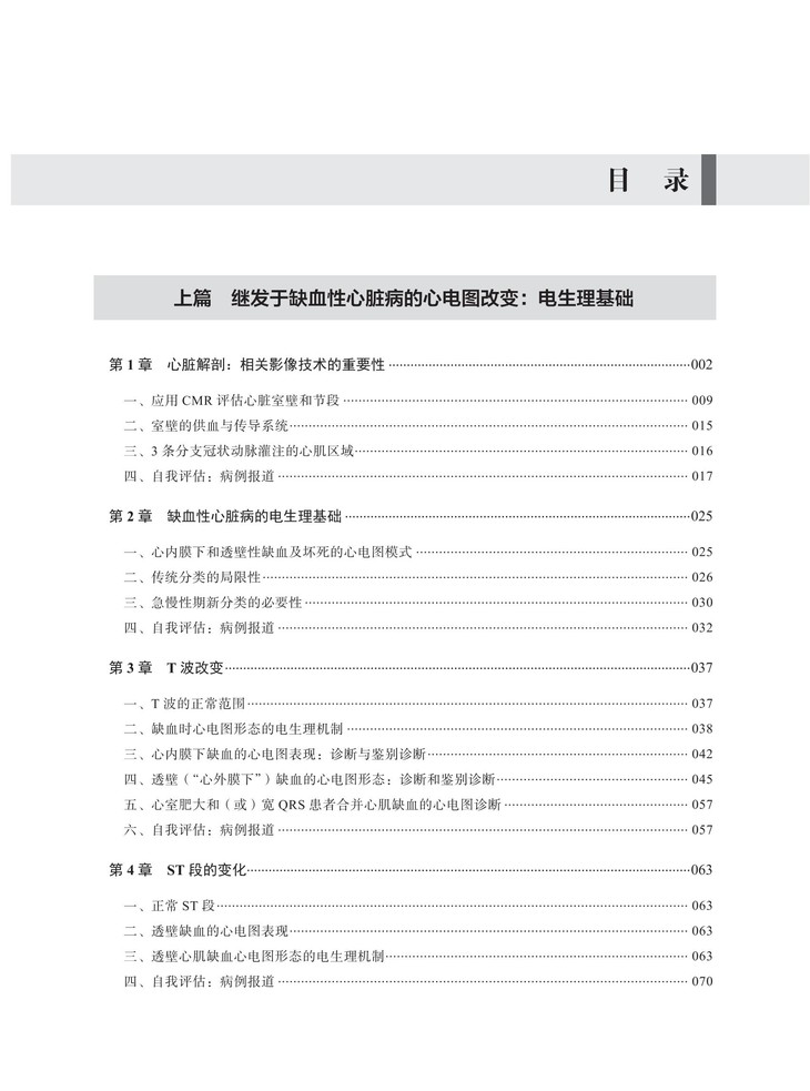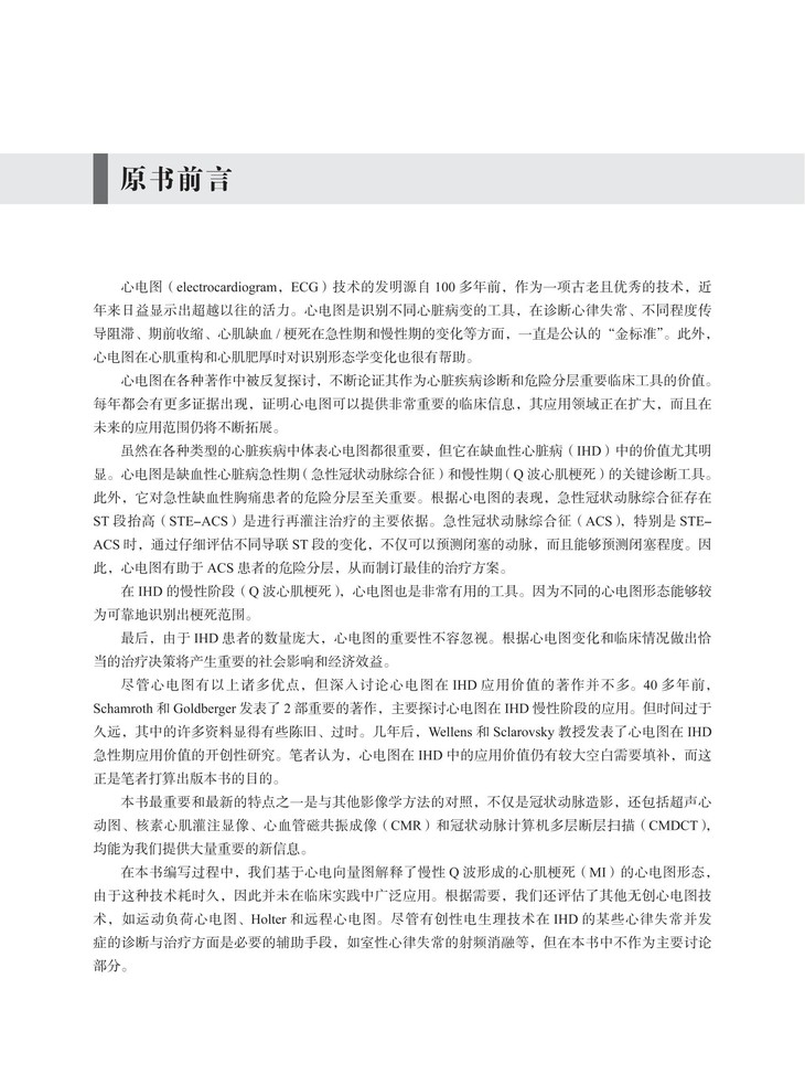 本书引进自世界知名的 WILEY 出版社,是一部新颖、别致的缺血性心脏病心电图著作,其最重要和最独特之处是将心电图与心脏解剖结构及多种影像学结果进行相互印证,包括但不限于冠状动脉造影、超声心动图、放射性同位素成像、磁共振成像和计算机断层扫描等方法,为读者提供大量实用信息。全书分上下两篇。上篇讨论了与缺血性心脏病相关的心脏解剖,分析了心内膜下缺血和坏死的心电图形态,阐述了心电图在不同类型心肌缺血中形态变化的电生理机制,并描述了不同导联的心电图形态与所累及的心肌区域之间的相关性。下篇则探讨了不同临床情况下缺血性心脏病心电图形态的改变,分析了与冠状动脉解剖的相关性及从心电图中可以收集到的与预后相关的信息。各章末还提供个案病例研究供读者进行评估,对资历尚浅者及经验丰富者均有启发作用。本书可作为从事急诊科、心内科、冠状动脉介入医生、内科医生及医学研究生不可或缺的参考书。