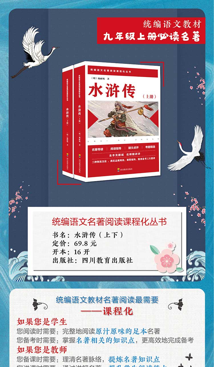 本书不但选取全本无删减版本,更有区别于其他同类品种的课程化这一体系。书中设置;阅读规划;全书导读;随文批注;章节总结诸板块,更附上历年中考题。学生可按照课程化要求精读全本名著,学习阅读方法,增强探究意识,感受经典文学的魅力;也可泛读书前导读、旁批、章节总结,完成*后的中考题,轻松备考。教师可依托相关板块,轻松完成名著阅读课程教学,解决新时期语文教学中一大难题。可以说,本书从阅读能力、课程建构、精准备考等方面,全方位满足了师生需求。