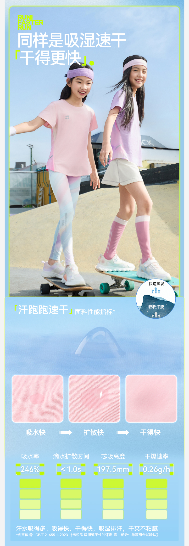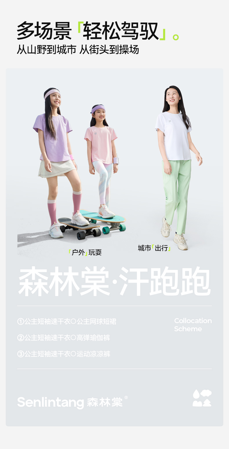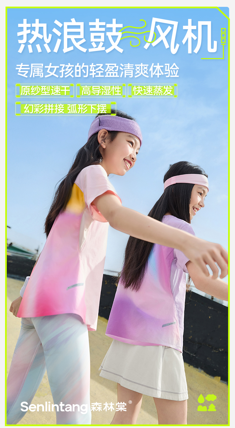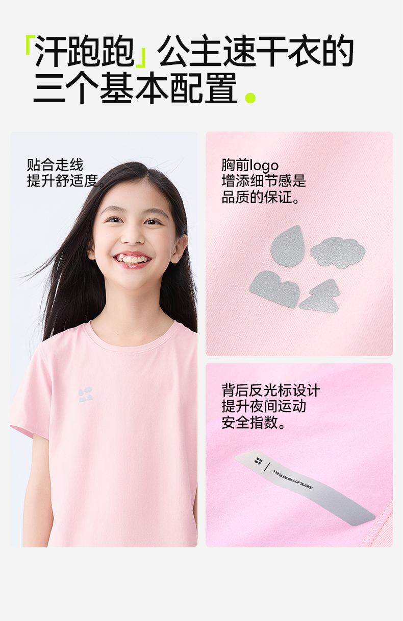 【汗跑跑公主短袖速干衣】森林棠25夏款儿童女户外运动正肩速干T恤40322531