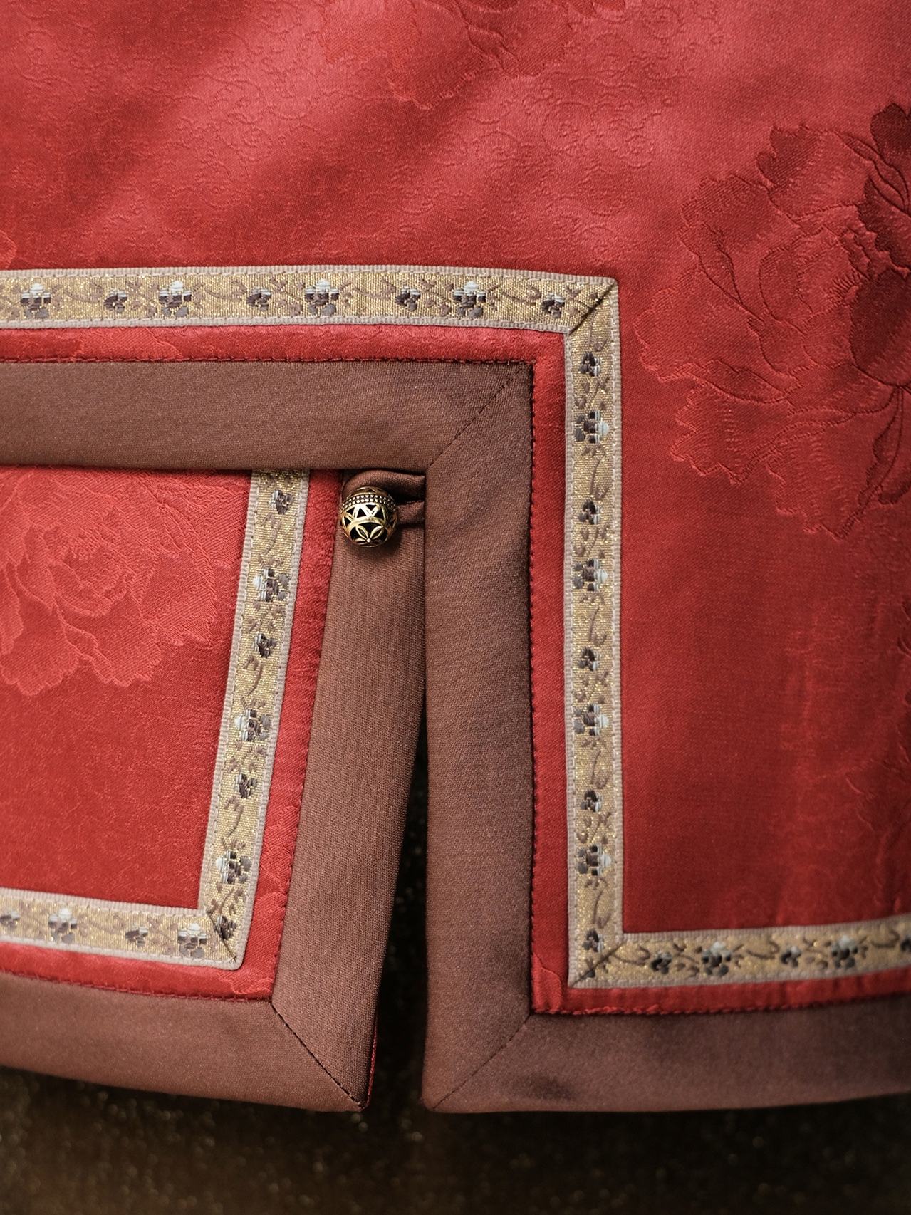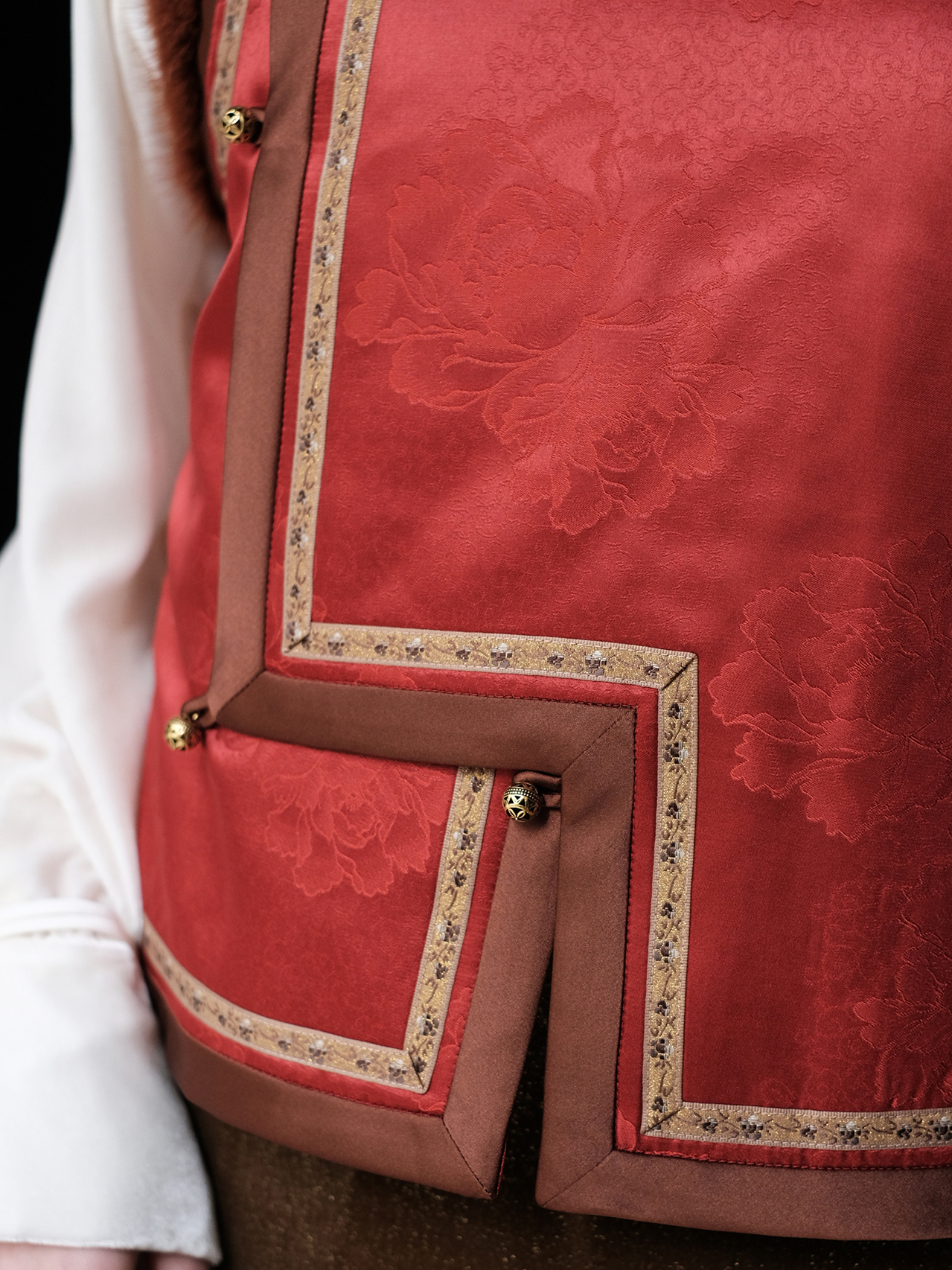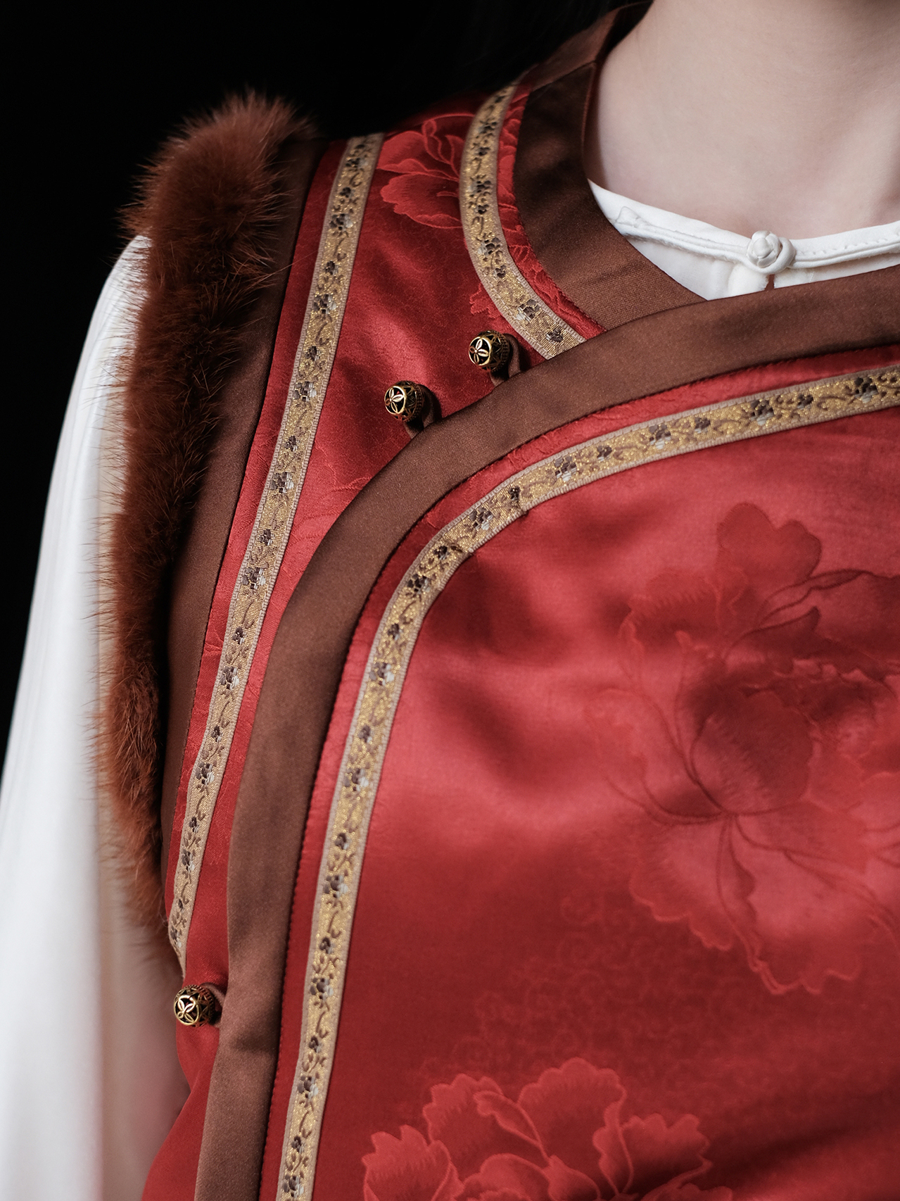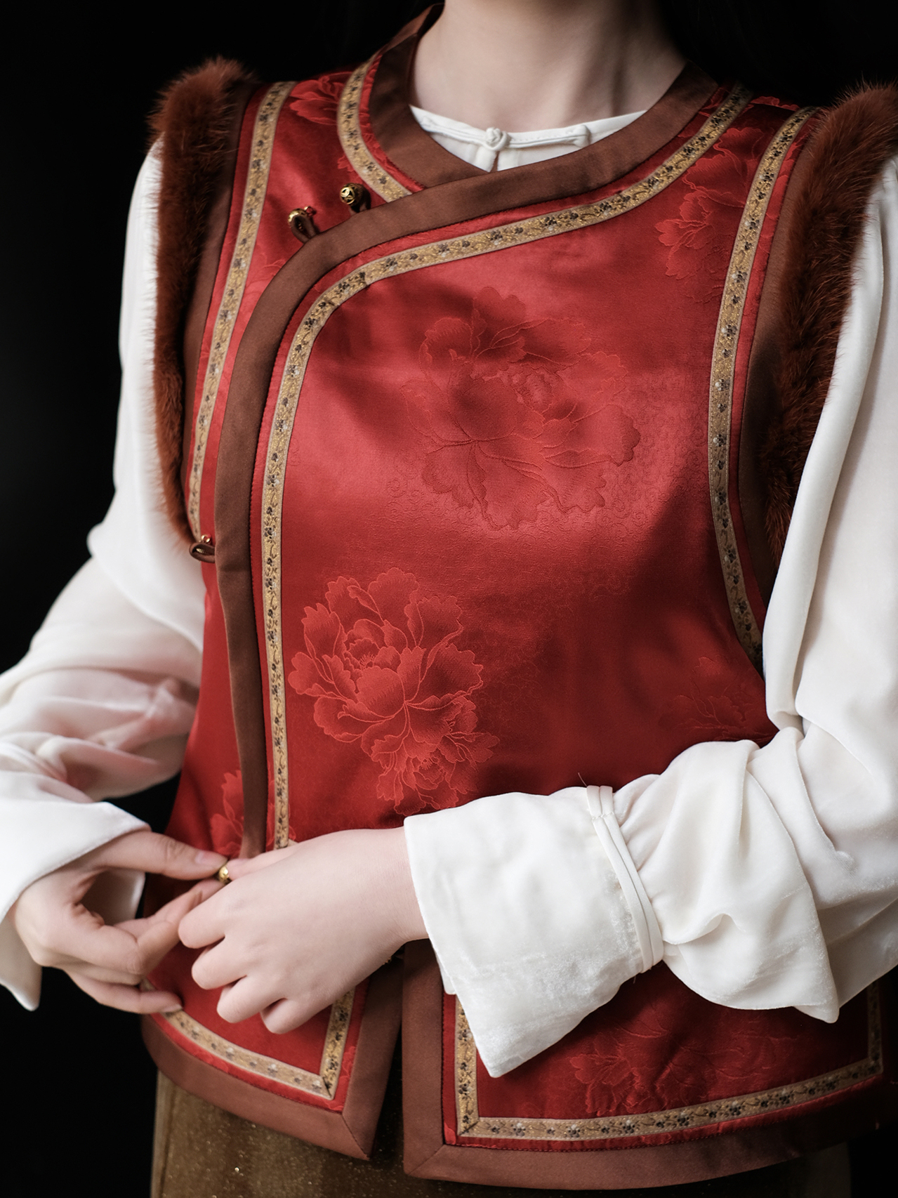 盛唐婧 | 丹霞映璧香云纱重缎夹棉水貂马甲