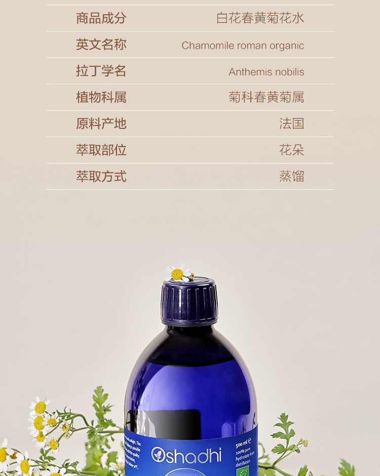 Oshadhi德国O家 罗马洋甘菊纯露 舒缓肌肤 花水爽肤水