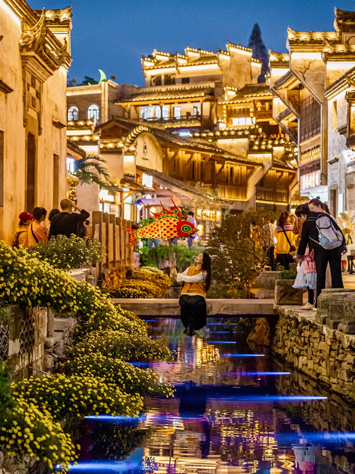 夜幕下的望仙谷处处灯火通明,古塔熠熠生辉,璀璨夺目,与五光十色的古街交相辉映,堪比丽江古城。空中俯瞰,整个山谷流光溢彩,灿若星河。在望仙谷沉浸式玩闹撒欢,满足大小朋友对美景的期待,夜晚,欣赏望仙谷景区迷人夜景,还有景区精心准备的灯光秀,感受传统文化的魅力。赶快约上好友一起来望仙谷景区,开启属于你的狂欢之旅吧!