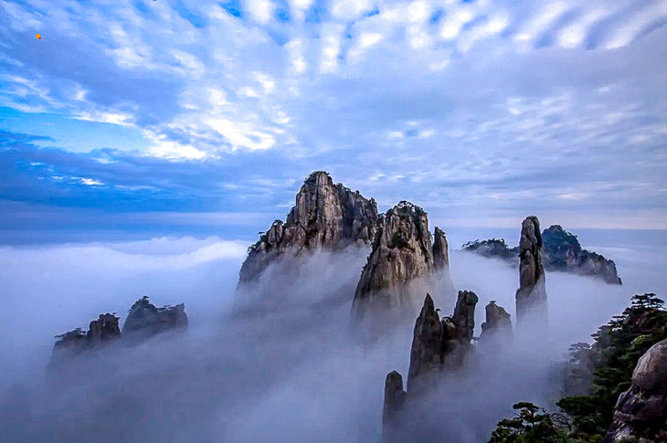三清山兼具“泰山之雄伟、黄山之奇秀、华山之险峻、衡山之烟云、青城之清幽”。“奇峰怪石、古树名花、流泉飞瀑、云海雾涛”并称自然四绝。三清山也是道教名山,山上的三清宫香火十分旺盛。在偌大的三清山中,你可以乘缆车尽赏山间美景,行走栈道,看松林阵阵,云雾霭霭。早可看日出,夕可赏晚霞,待薄雾起时,身处深山里,还真有那么些仙山的意味。