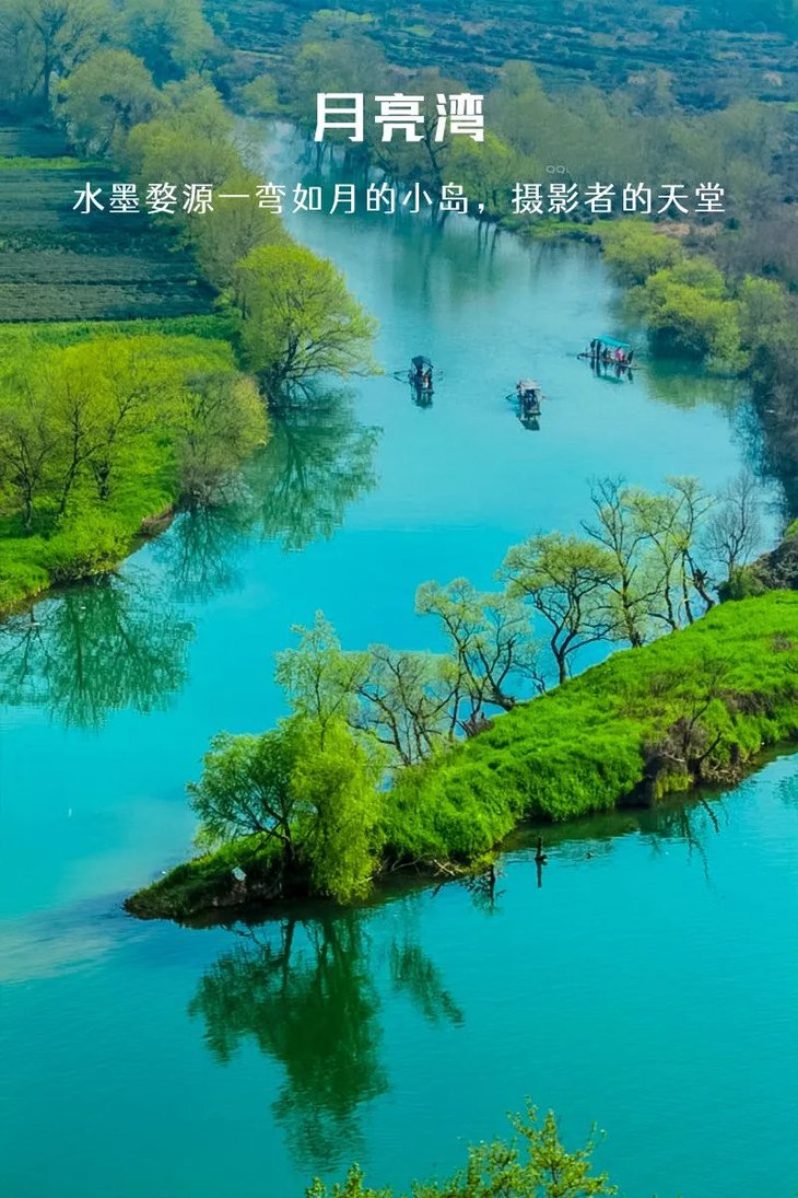 - 下午适时集合前往唯美的月亮湾,一弯江月在晨雾中若隐若现,沙洲如宁静在春水里的一弯新月,别有一番柔美江南的味道。这里还乘坐竹筏近距离游览月亮湾美景!