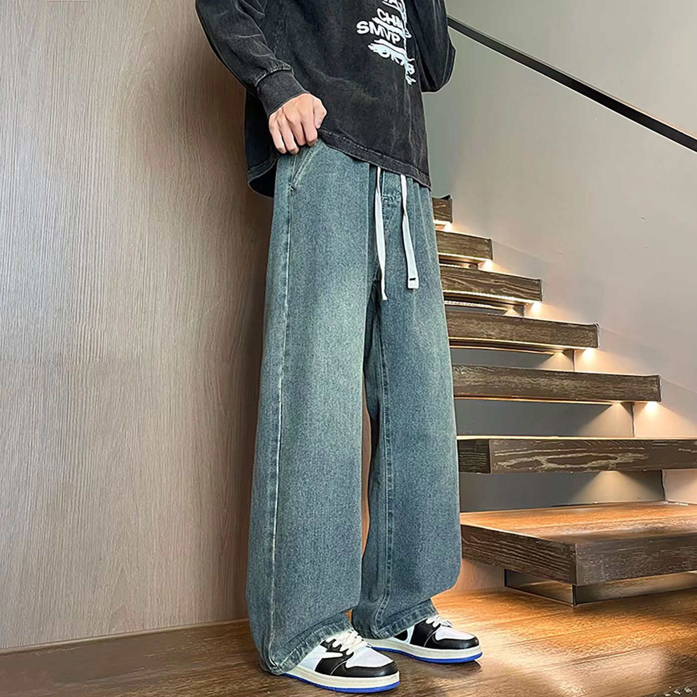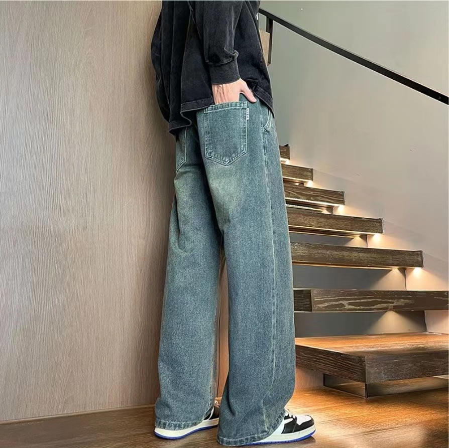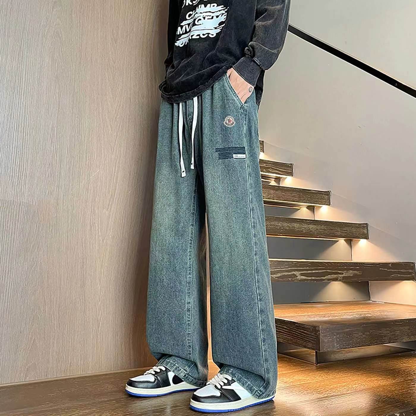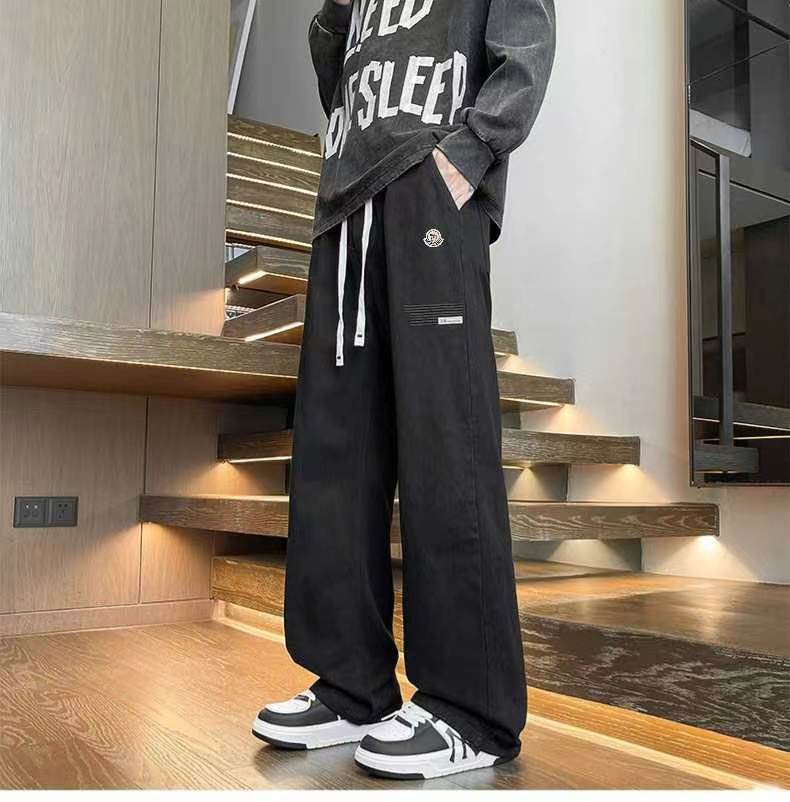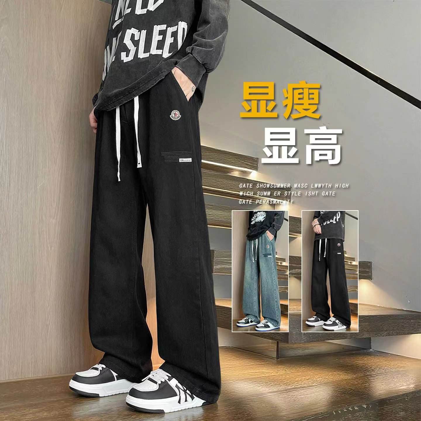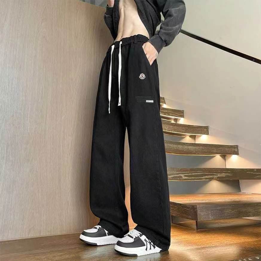秋冬休闲敞口牛仔裤。定制新型混纺水洗牛仔面料 ,柔软亲肤 ,不起球, 有弹性。个性百搭 ,立体裁剪版型合身,不挑身材舒适着装。刺绣Logo,简单大气,裤身褶皱拼接设计,上身穿搭帅气好看,高街风十足 !常规版型,立体裁剪拼接 cao级显腿长 适合各种身材,秋冬穿搭神裤,男女情侣款都能轻松驾驭!