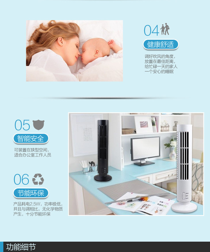 【风扇】*迷你无叶风扇创意智能台式风扇家用散热便携式桌面usb小风扇塔扇