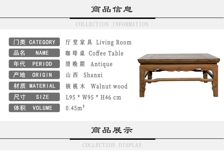 中式全实木茶几 小户型仿古原木咖啡桌 复古核桃木老家具 客厅茶桌