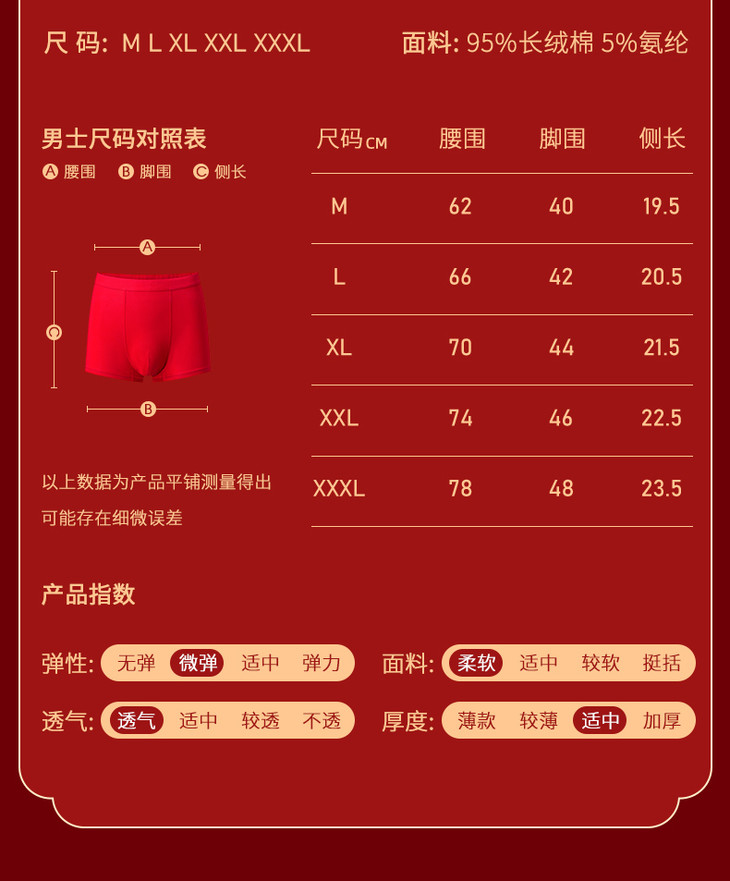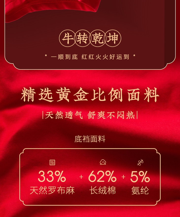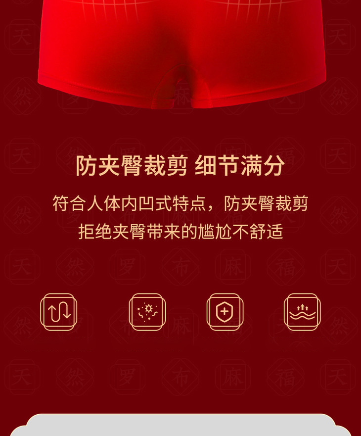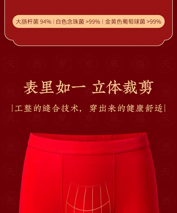 戈宝新年鸿运男士内裤 远红外线保健内裤平角内裤