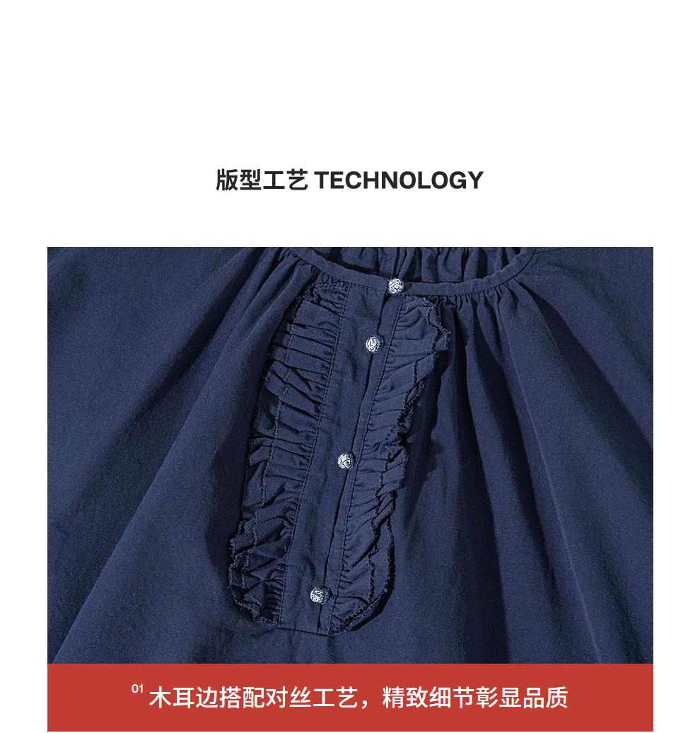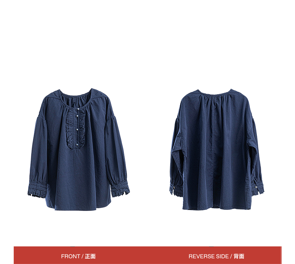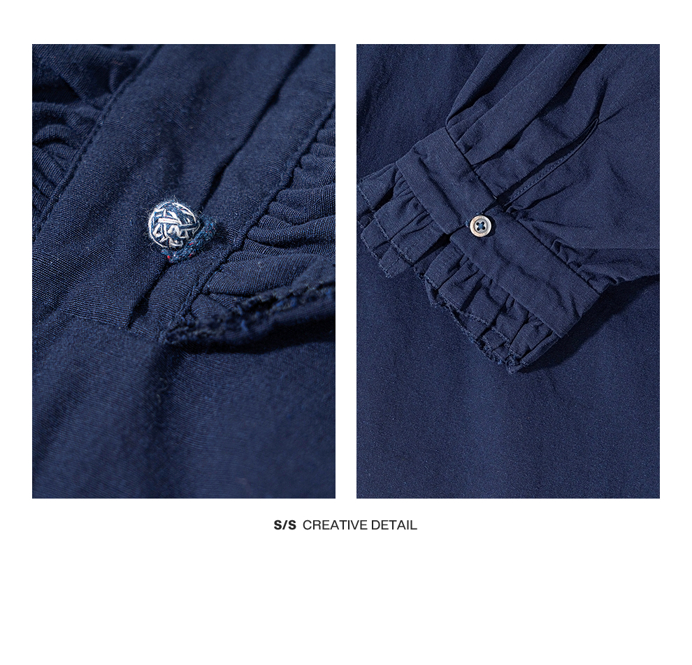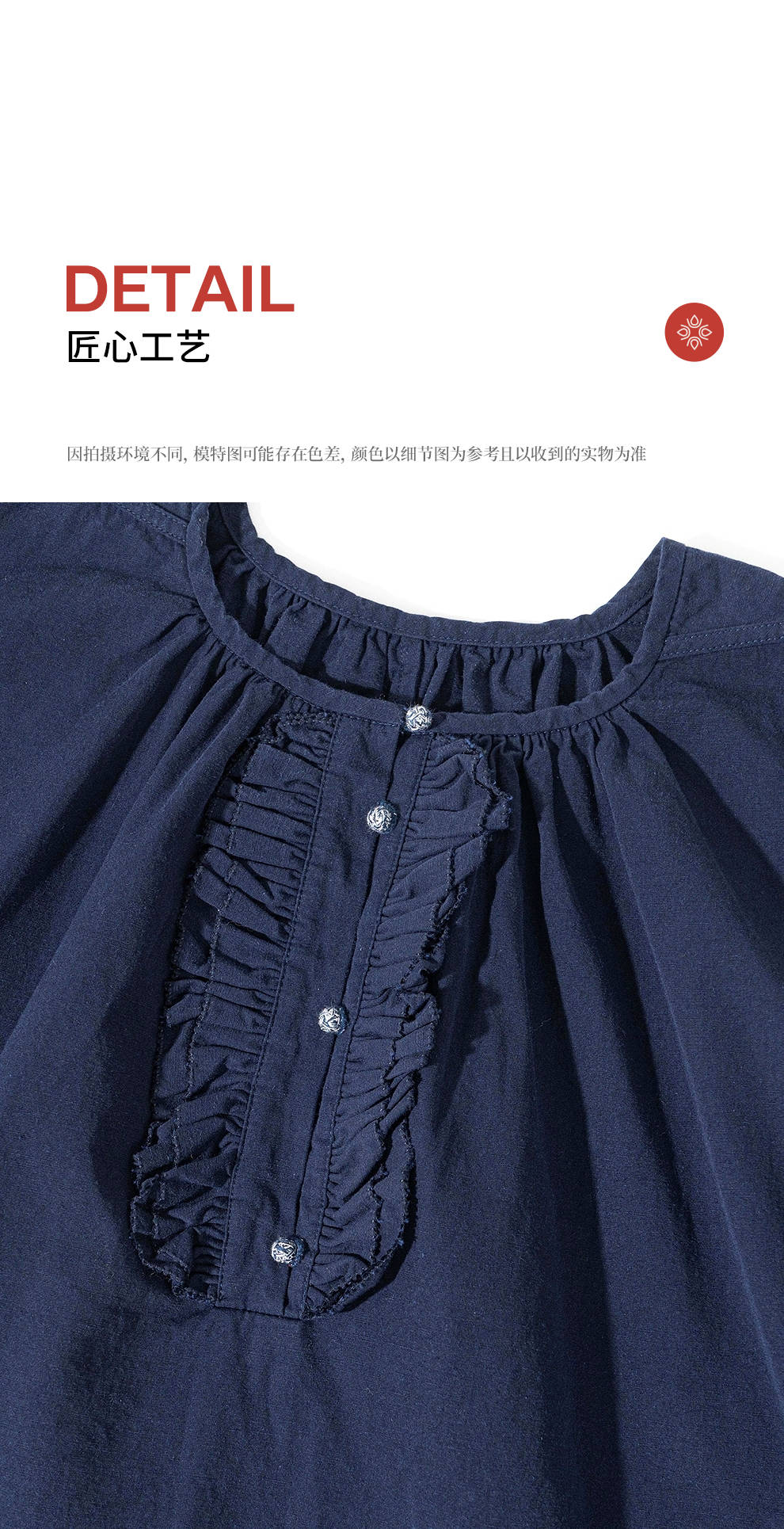 绽放690朵/花边儿小衫·亚麻棉气质花边碎褶宽松落肩长袖衬衫新款