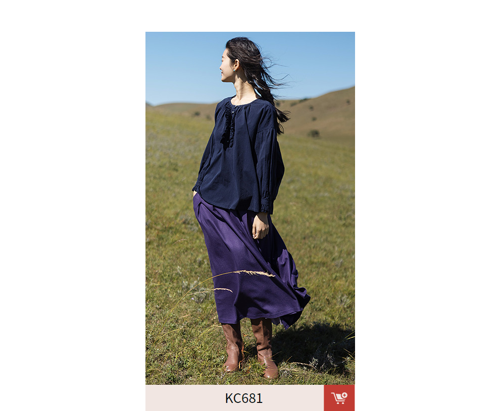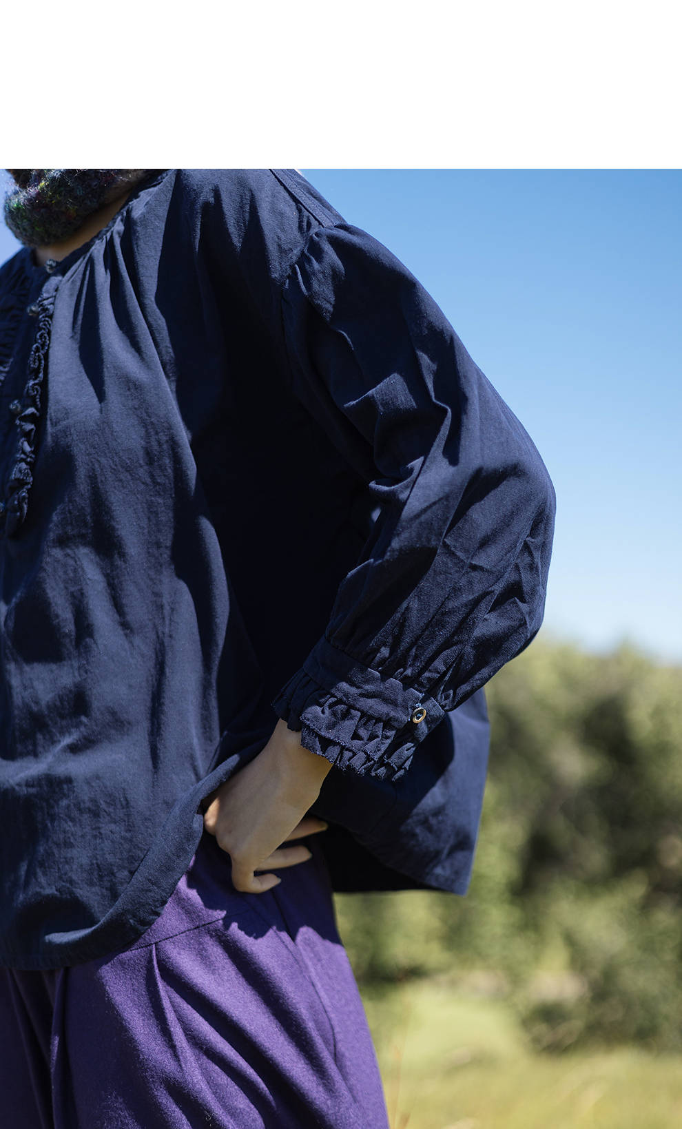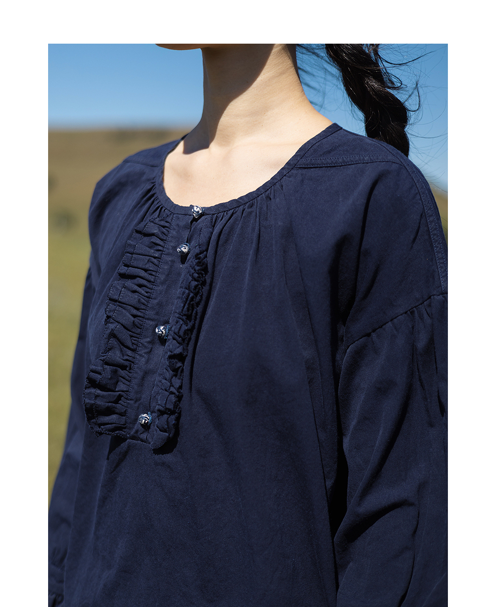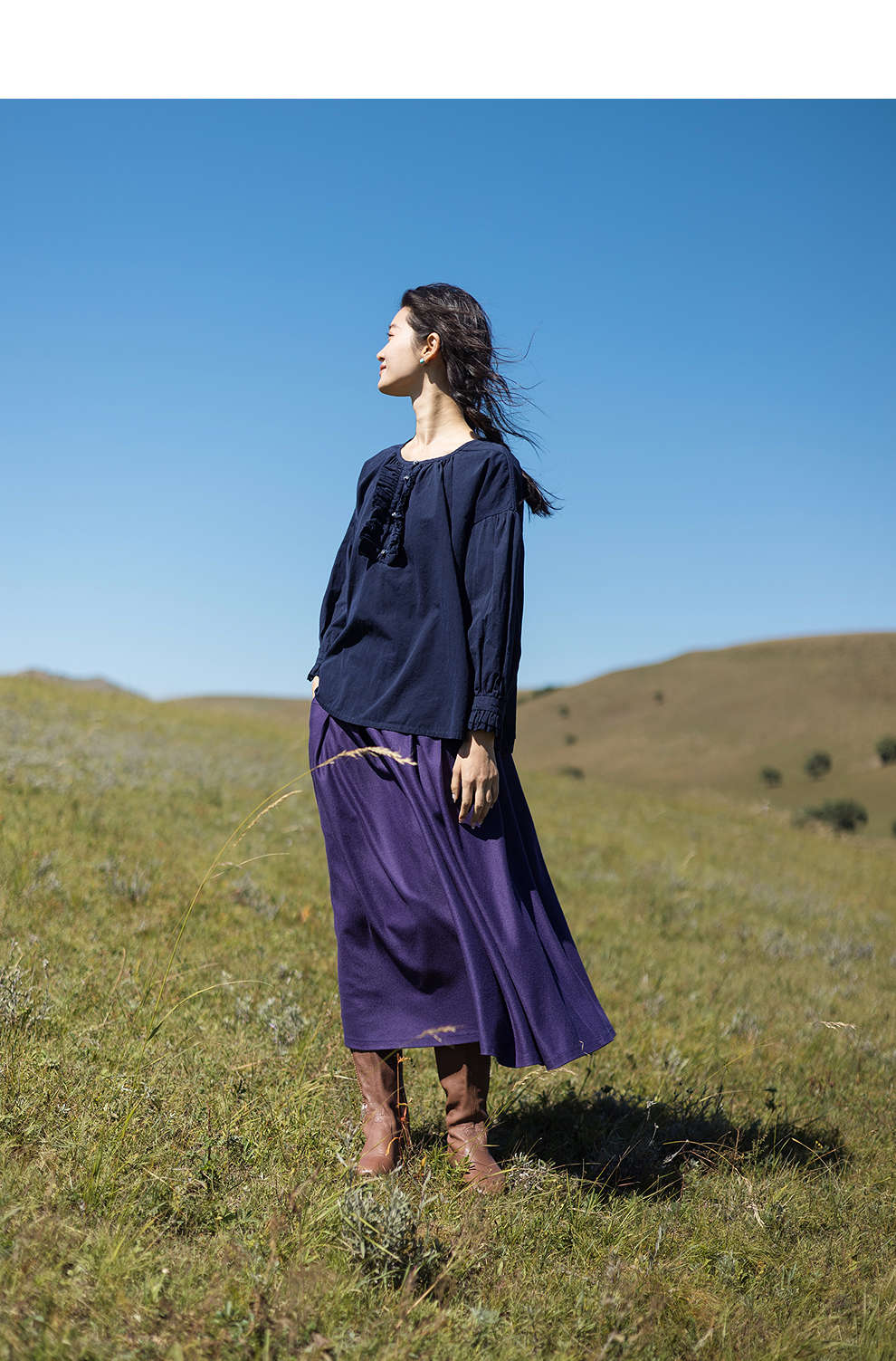 绽放690朵/花边儿小衫·亚麻棉气质花边碎褶宽松落肩长袖衬衫新款