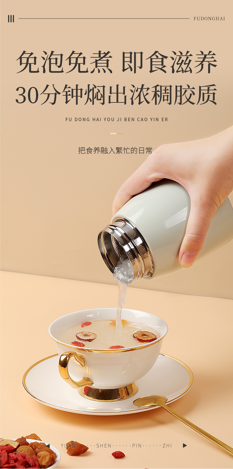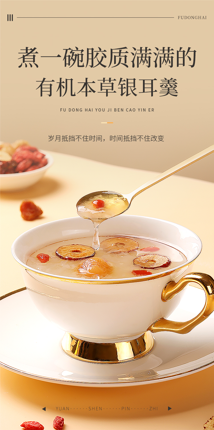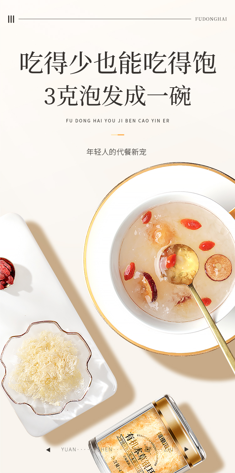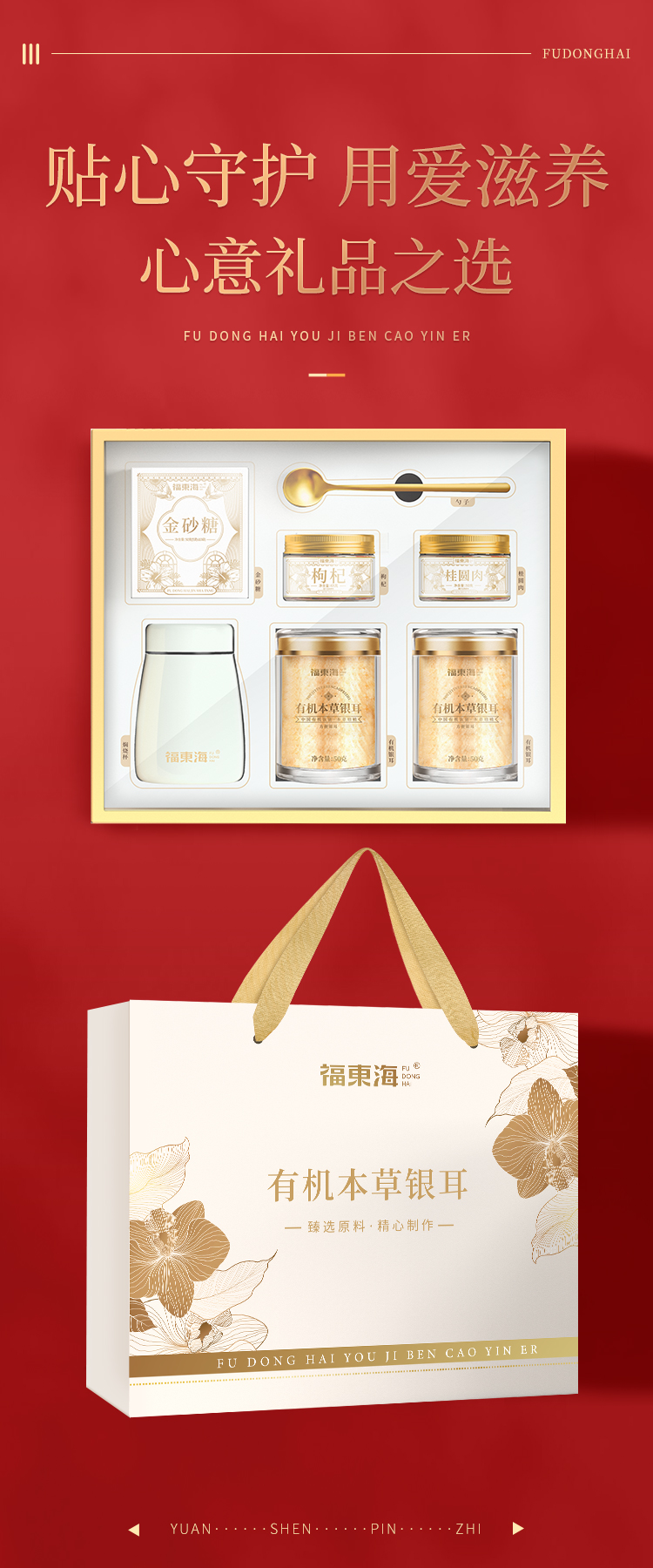 福东海 有机本草银耳礼盒(有机本草银耳50克/罐*2+金砂糖50克(5克x10袋)/盒+枸杞65克/罐+桂圆肉50克/罐320ml焖烧杯+小金勺)/盒